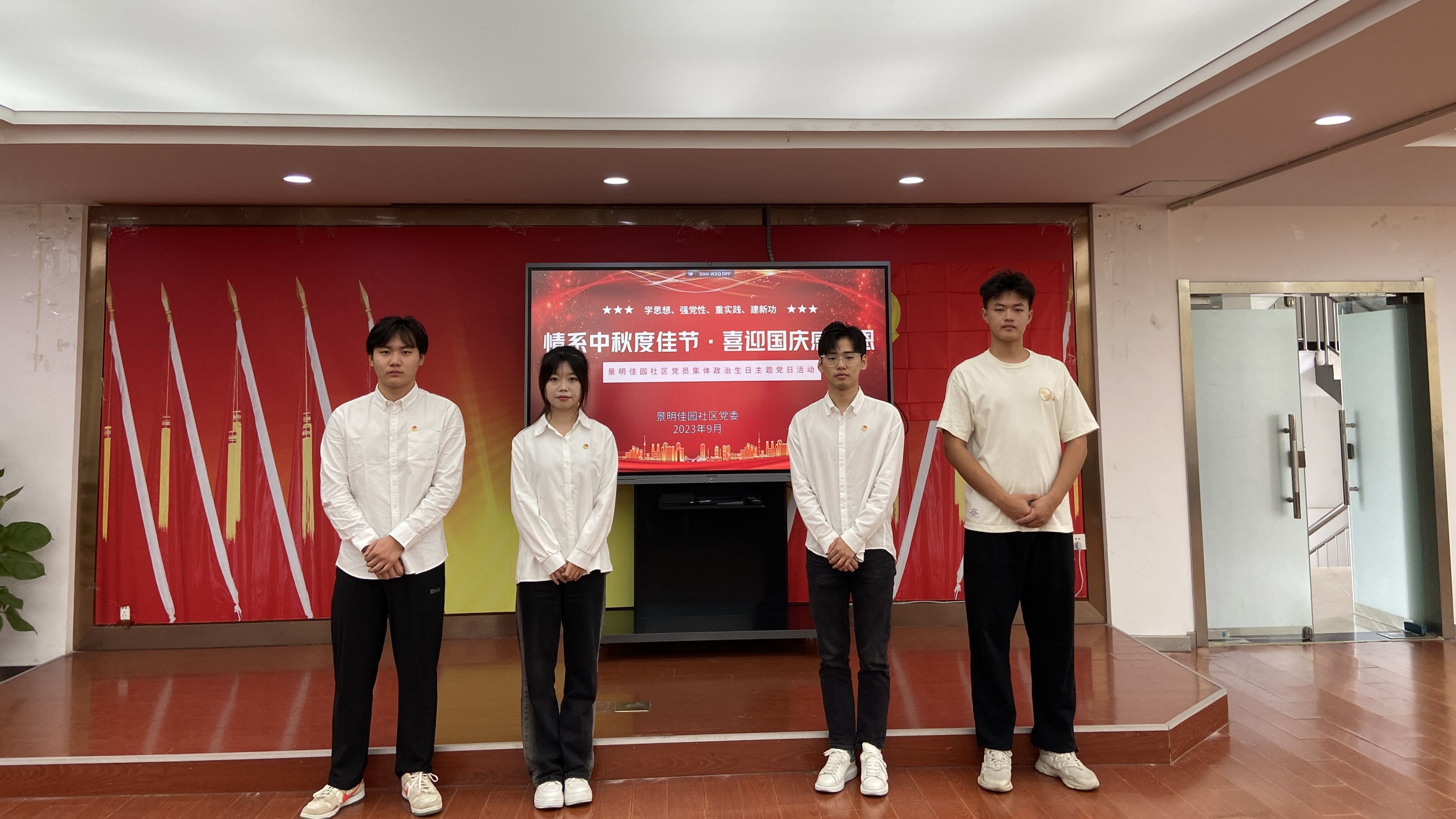 此次活动,同学们参加了景明佳园社区开展的"情系中秋度佳节喜迎国庆感党恩”活动。