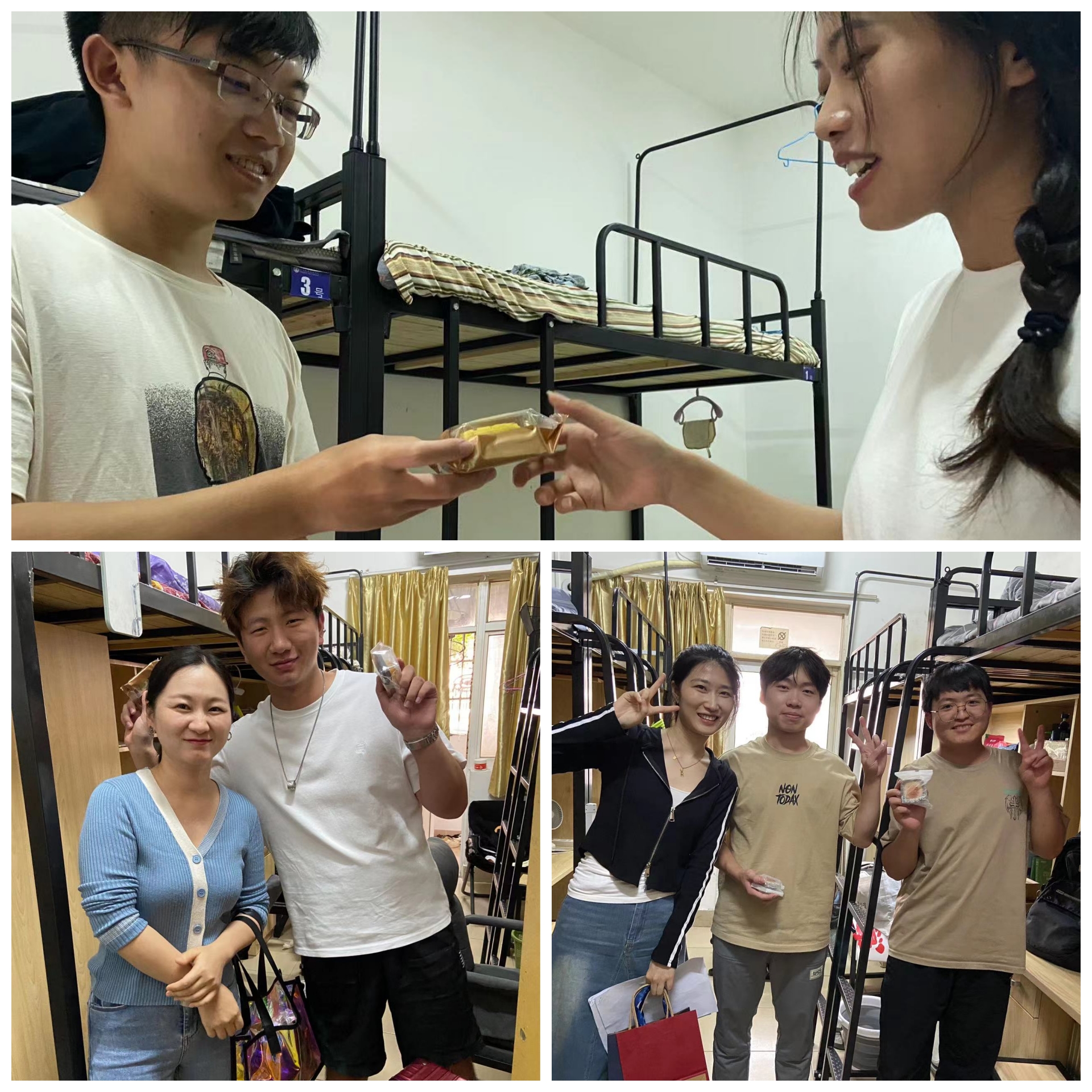 “月满满,桂香飘,年年岁岁望今朝。”时光匆匆,伴随着四季的脚步,又迎来了中秋和国庆佳节。在这个亲人共畅饮的小长假,有这样的一群孩子,因为家远、交通等问题不能回家和父母团聚,只能留在学校度过。“今夜月明人尽望,不知秋思落谁家”,为更好体现学校、老师对广大学生的关爱,了解孩子们目前的学习生活状态,让远在他乡的孩子们感受到家一般的温暖,艺术设计与建筑程系副主任周卫、党支部书记杨春娟带领辅导员们组织开展学生慰问庆祝活动,用爱传递温暖。