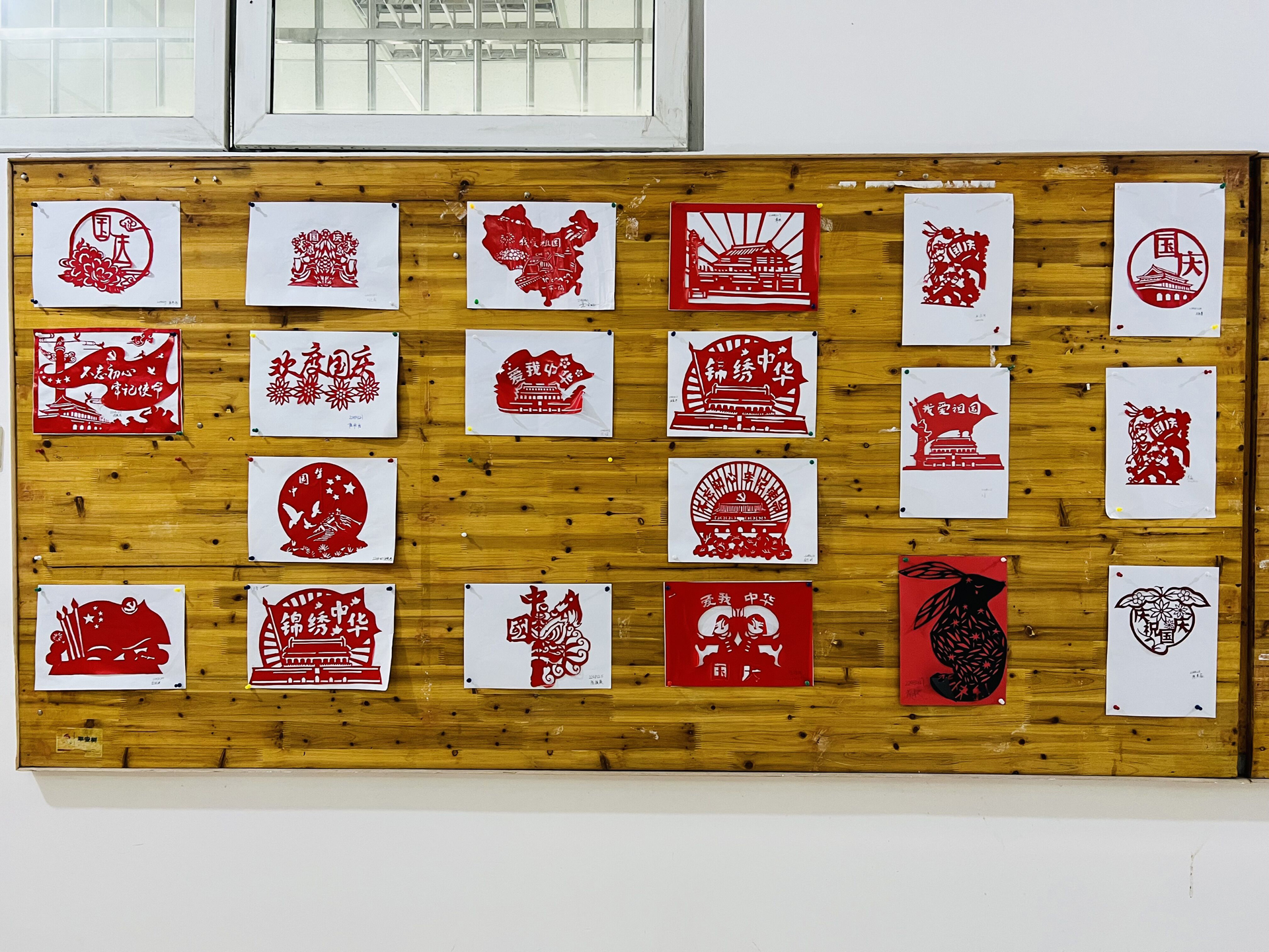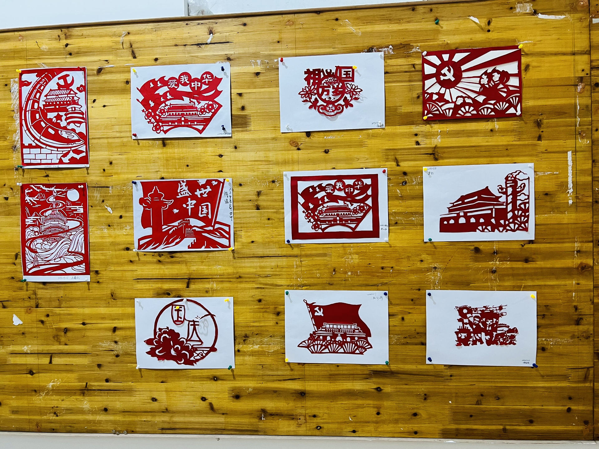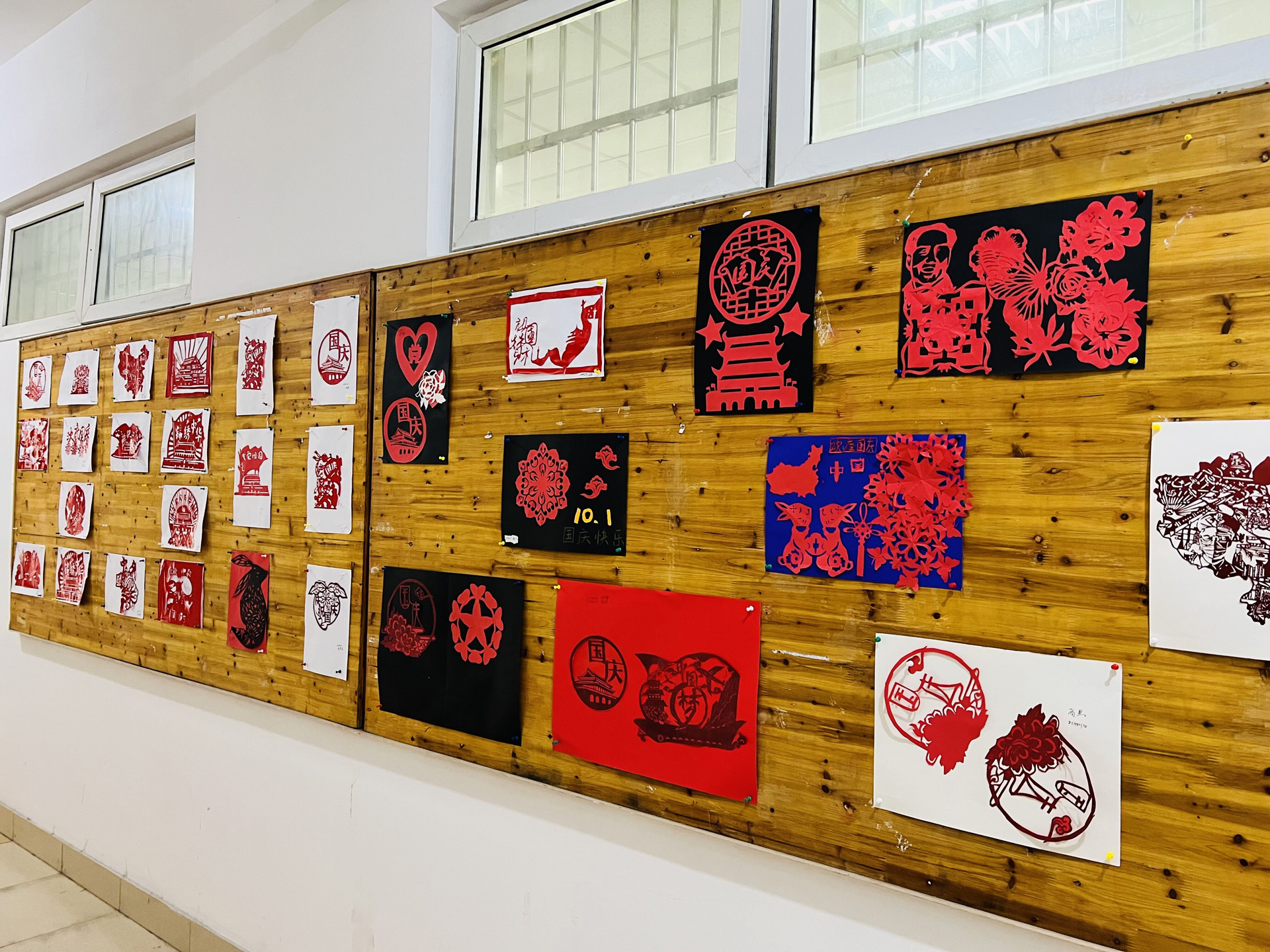 在老师的指导下,一把把剪刀“咔嚓”作响,游走在一张张红纸上。一张张红色剪纸饱含了喜迎双节的节日寓意,也剪出了同学们发现美、创造美的生活态度和对美好生活的期盼,最后老师们遴选出一批优秀作品在8号楼二楼走廊展示区展出。