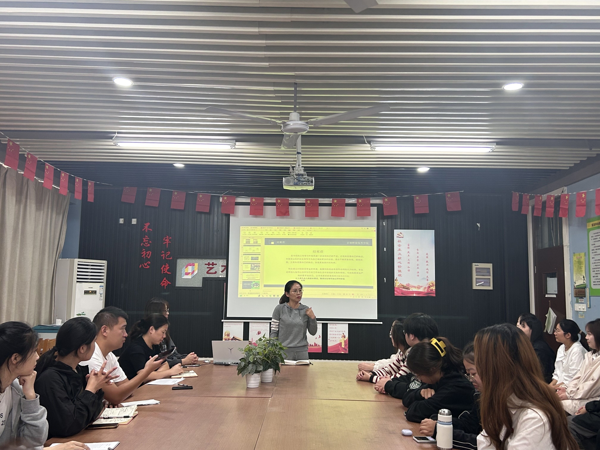 本次答辩会采用线上与线下相结合的方式,大二24名在校学生参加现场答辩,大三11名顶岗实习学生采用视频连线进行答辩。会上,本次拟推荐35位学生采用PPT展示与演讲相结合形式,从个人自然情况、家庭成员情况及在校现实表现进行了综合阐述,详细汇报了上学年取得的各项成绩和进步。老师们按答辩程序进行现场提问。最后,杨主任对同学们取得的成绩和进步进行充分的肯定,希望同学们再接再厉,取得更大的进步,同时做好榜样引领、朋辈引航,为营造优良学风发挥自己的作用。