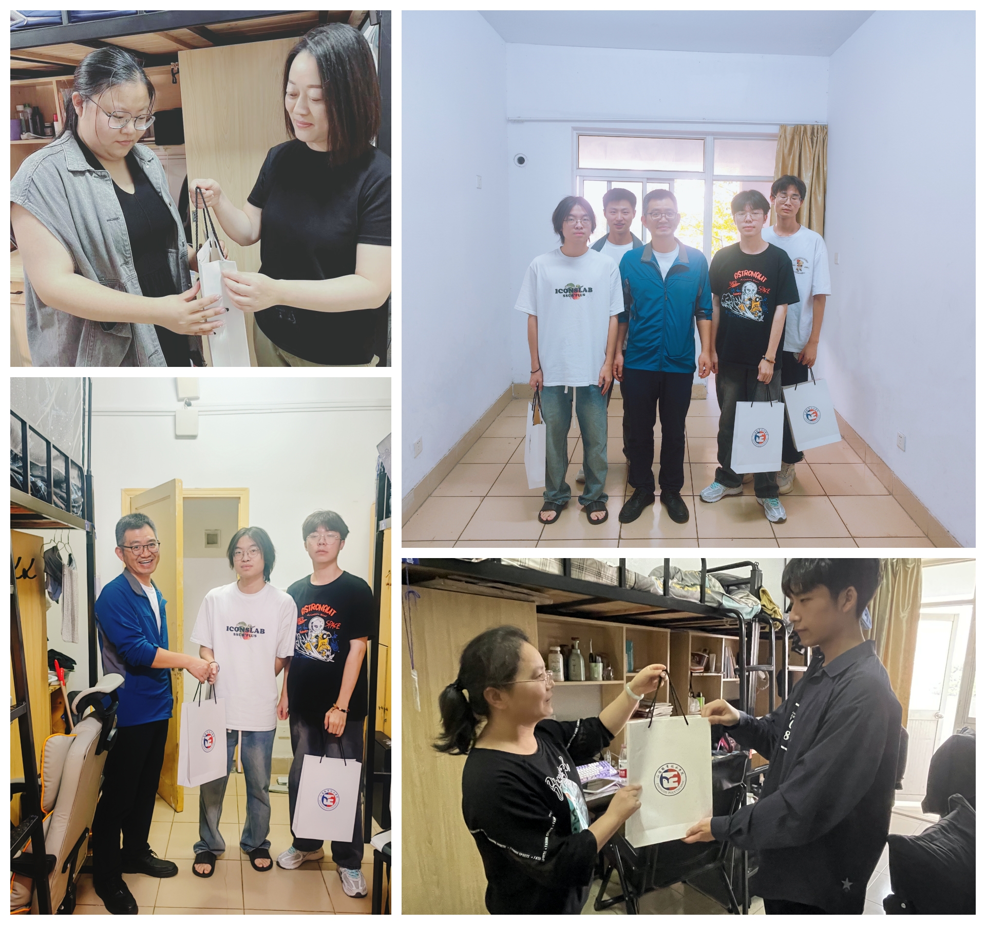 班主任们仔细检查了学生宿舍环境卫生、基础设施安全等情况,对于同学们比较关心的问题,老师们也逐一予以详细解答。同学们感受到来自任课老师的关怀,热情地跟老师们交流学年的学习规划。走访过程中,班主任老师们给同学送上包装好的“助学礼包”,小小礼包承载着艺建系对同学们的美好祝愿与殷切期望。224802班班主任周卫老师说道:希望大家能充分利用课堂时间、提高上课效率,课下能走出宿舍,适当开展户外活动,协调好学习、生活与娱乐的时间。