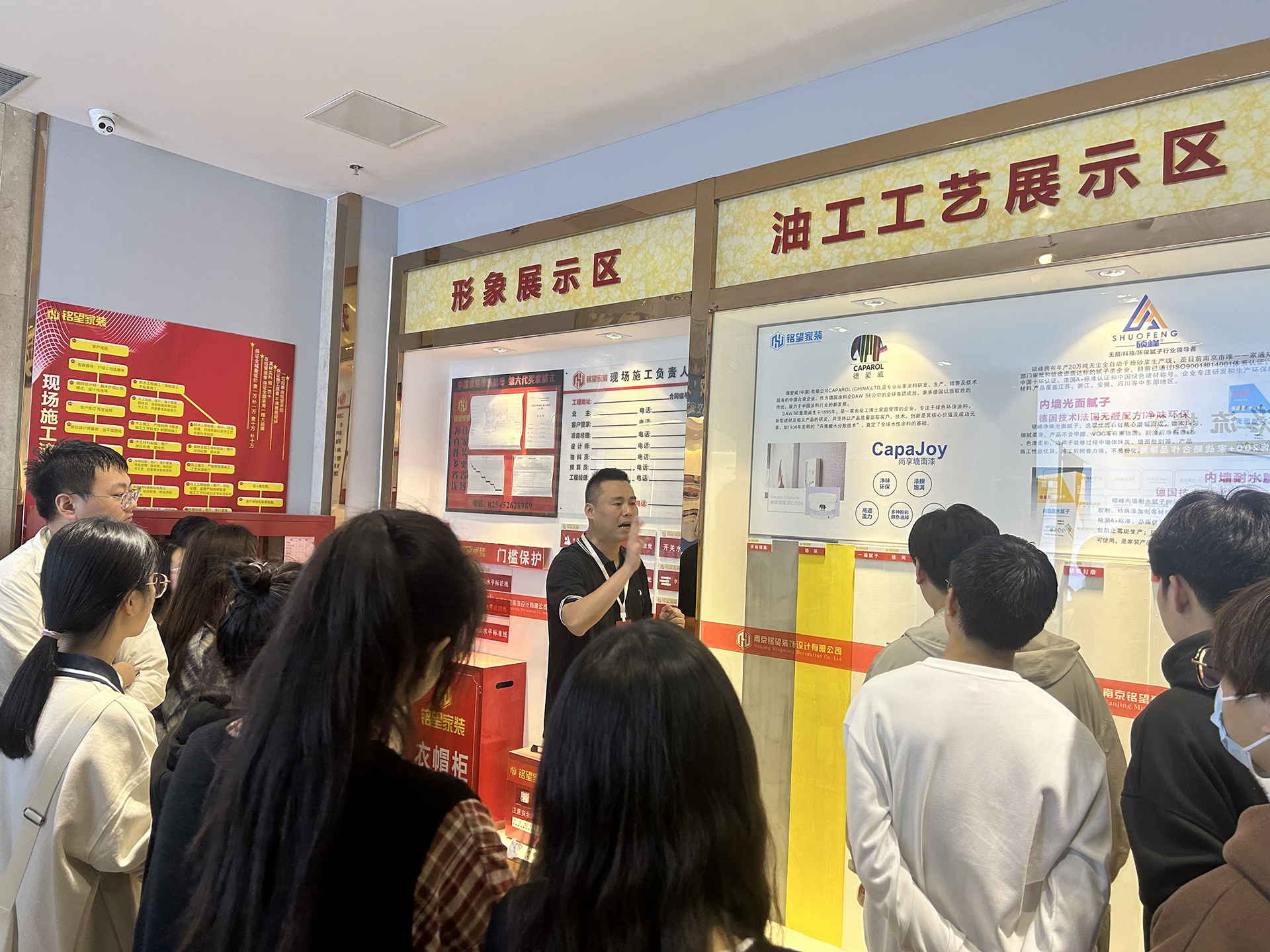 为进一步推动校企深度合作,促进课程教学的校企联动, 11月1日,《室内装饰材料与施工工艺》的课程负责人冯显静老师带领环境艺术设计专业224301班的同学们赴校企合作的单位南京铭望装饰有限公司上了一堂特色的专业课。