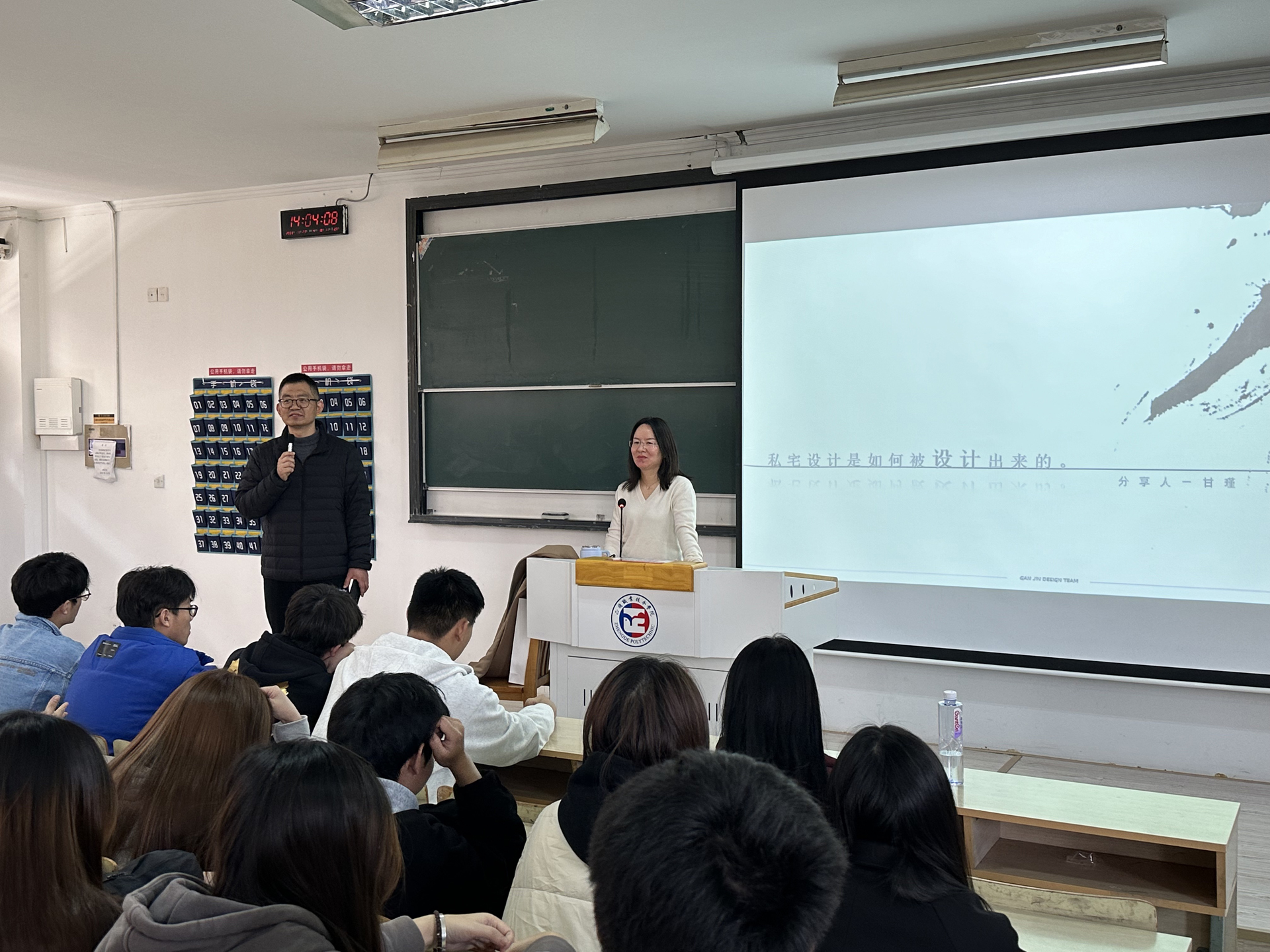 为进一步深化校企合作、构建协同育人新格局,提升学生职业意识和素质,积极开展好“企业专家进天博体育 “系列讲座计划。2023年11月23日,艺术设计与建筑工程系邀请尚层装饰(北京)有限公司南京分公司(以下简称尚层装饰)高级主创设计师甘瑾开展《私宅设计是如何被设计出来的》主题讲座。讲座由系副主任周卫老师主持, 2022级建筑室内设计专业全体同学和班主任老师聆听了本次讲座。