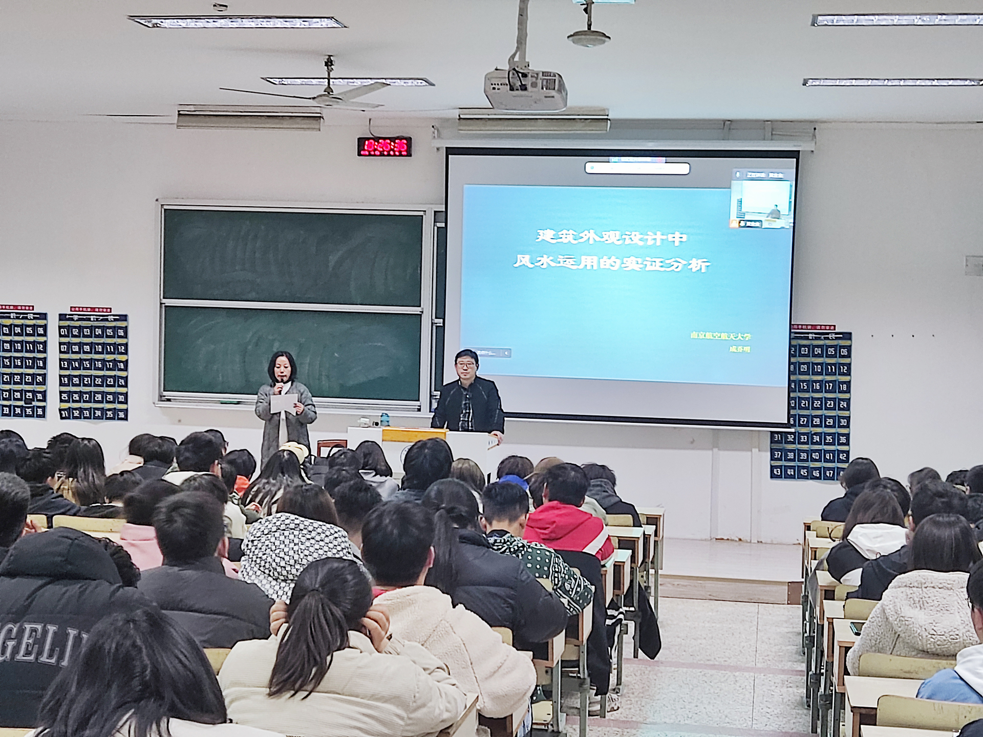 成乔明老师以《建筑设计中风水运用的实证分析》作为讲座主题,将中国传统文化风水学在建筑规划和建筑设计重点应用进行了一场精彩的分享。讲座中对风水学与人的心理、行为、健康关联的因素进行了剖析,阐述了风水学文化与城市建筑设计中与地理地貌、水文水势、心理暗示、周边建筑之间的关系。讲座中选取 “香港国际金融中心”和“上海陆家嘴国际金融商圈”二个案例采用实证分析法,以图文并茂、生动风趣的语言形式解析了风水学在建筑设计及城市规划中的具体运用过程及方法,让在场师生得到了很大的知识提升,收获满满。