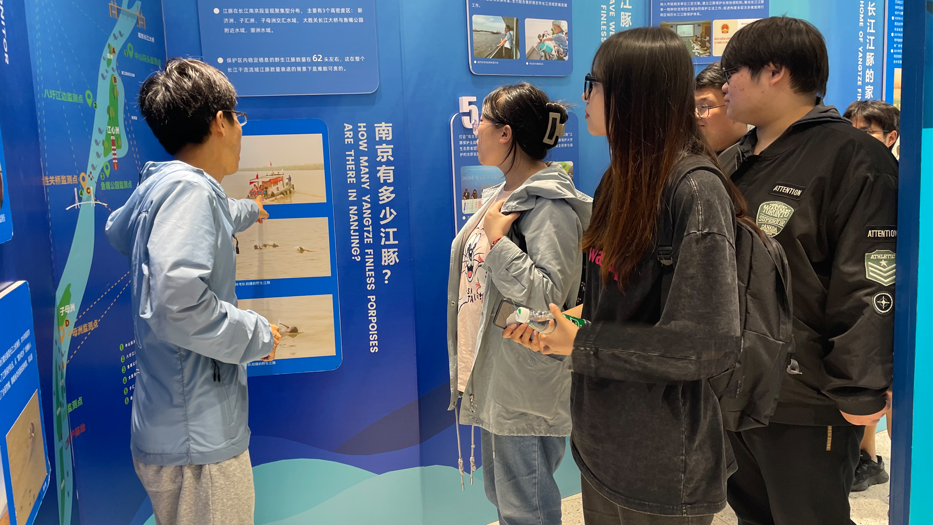 协会会长姜盟为我系师生介绍协会的日常工作及江豚现状,江豚是我国一级濒危保护动物,全世界约1000头,在南京长江段约20头。由于环境恶化,江豚生活环境堪忧,南京江豚水生生物保护协会主要做江豚观测、保护、科普宣传工作。目前急需插画、漫画、海报、动画、文创等形式,来加大宣传力度。