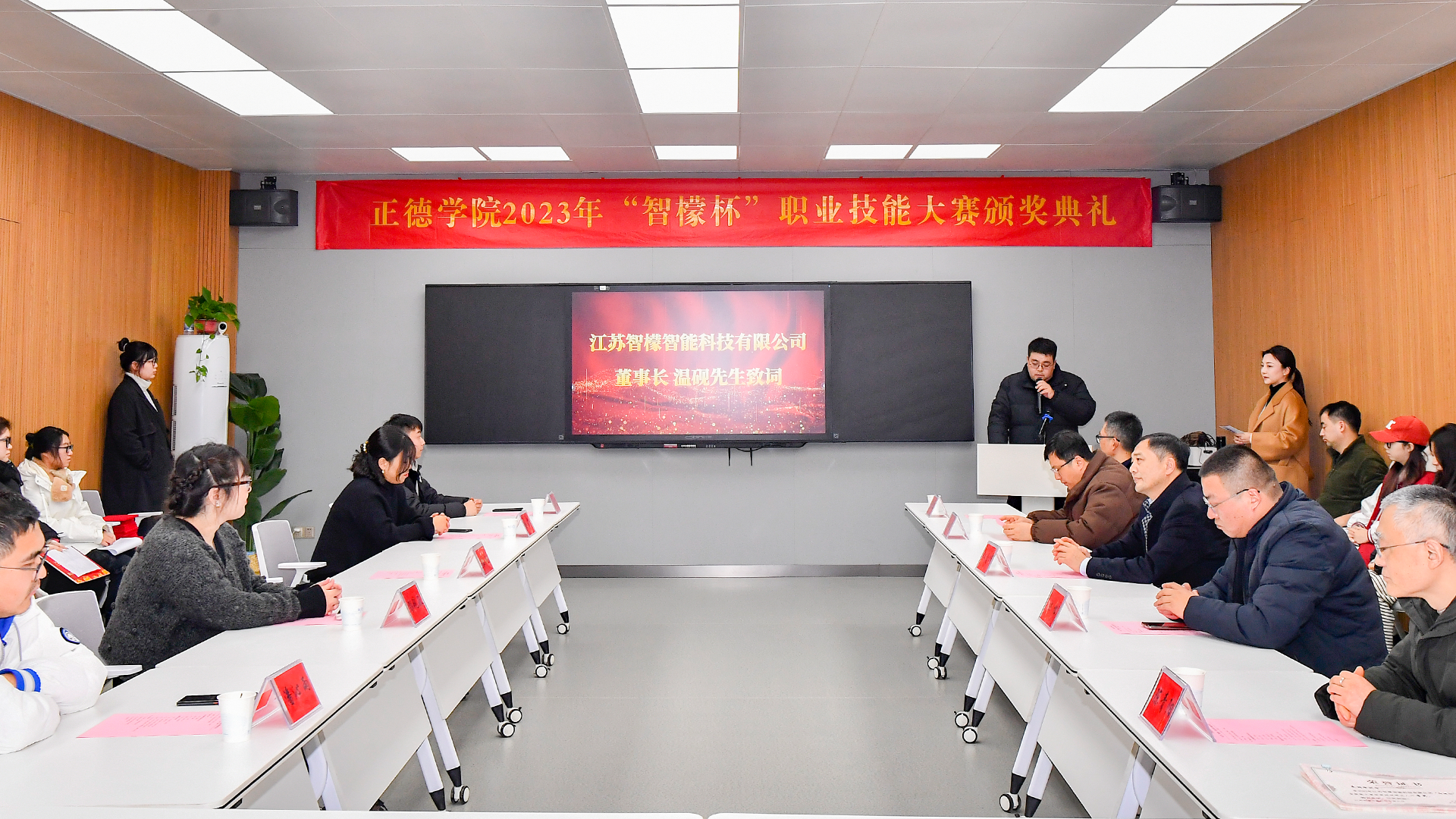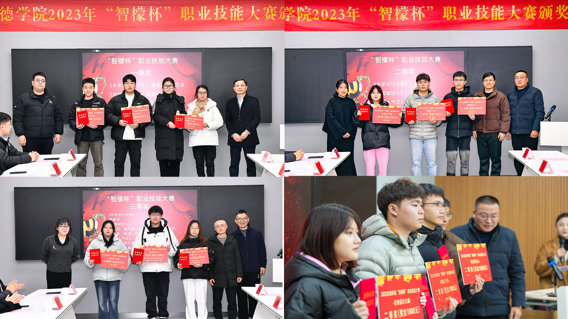为进一步创新校企合作,深化产教融合,艺术设计与建筑工程系与江苏智檬智能科技有限公司联合举办了首届“智檬杯”职业技能大赛。数字媒体技术专业将大赛融入课程实践项目教学,指导学生为企业设计制作了一批高质量的数字媒体作品,受到企业的高度认可。经校企共同评审,评选出3个赛项一、二、三等奖共9名(组)、优秀奖若干。2023年12月29日下午,校企双方在9106智慧教室隆重举办了大赛颁奖典礼,天博体育 江爱华副院长、江苏智檬智能科技有限公司董事长温砚以及天博体育 师生代表参加了典礼。