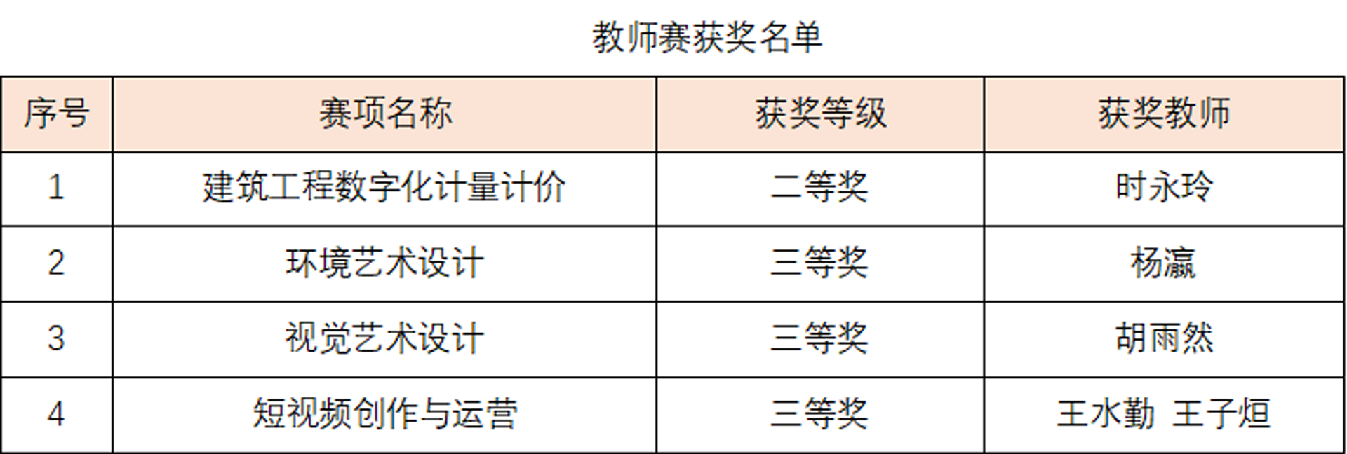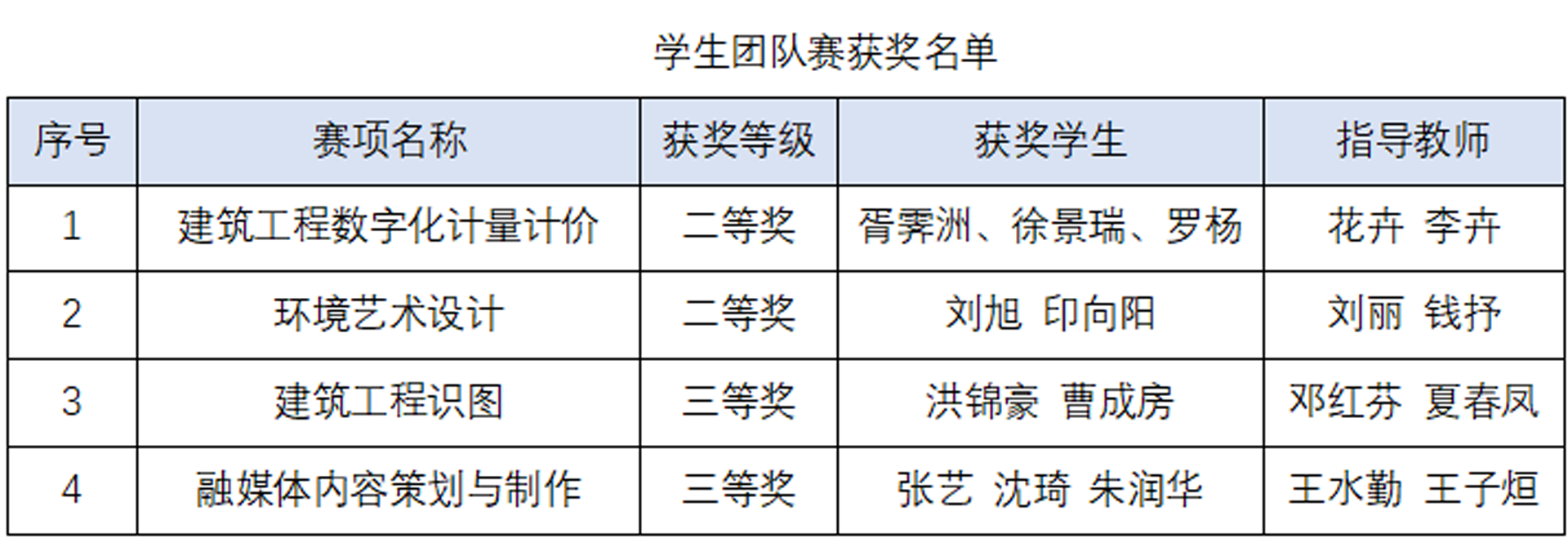 1月1日至20日, 2024年“中国银行杯”江苏省职业院校技能大赛高职组(第一阶段赛)项落下帷幕。艺术设计与建筑工程系共有13个赛项参加比赛,获得了二等奖3项、三等奖5项的优异成绩,其中时永玲、杨瀛、胡雨然、王水勤和王子烜等老师参加教师赛4个赛项并全部获奖;同时花卉和李卉老师指导的学生胥霁洲、徐景瑞、罗杨获得建筑工程数字化计量与计价赛项团队赛学生组二等奖,以总排名第七的成绩获得国赛选拔赛资格。取得了天博体育 在省技能大赛中的重大突破。