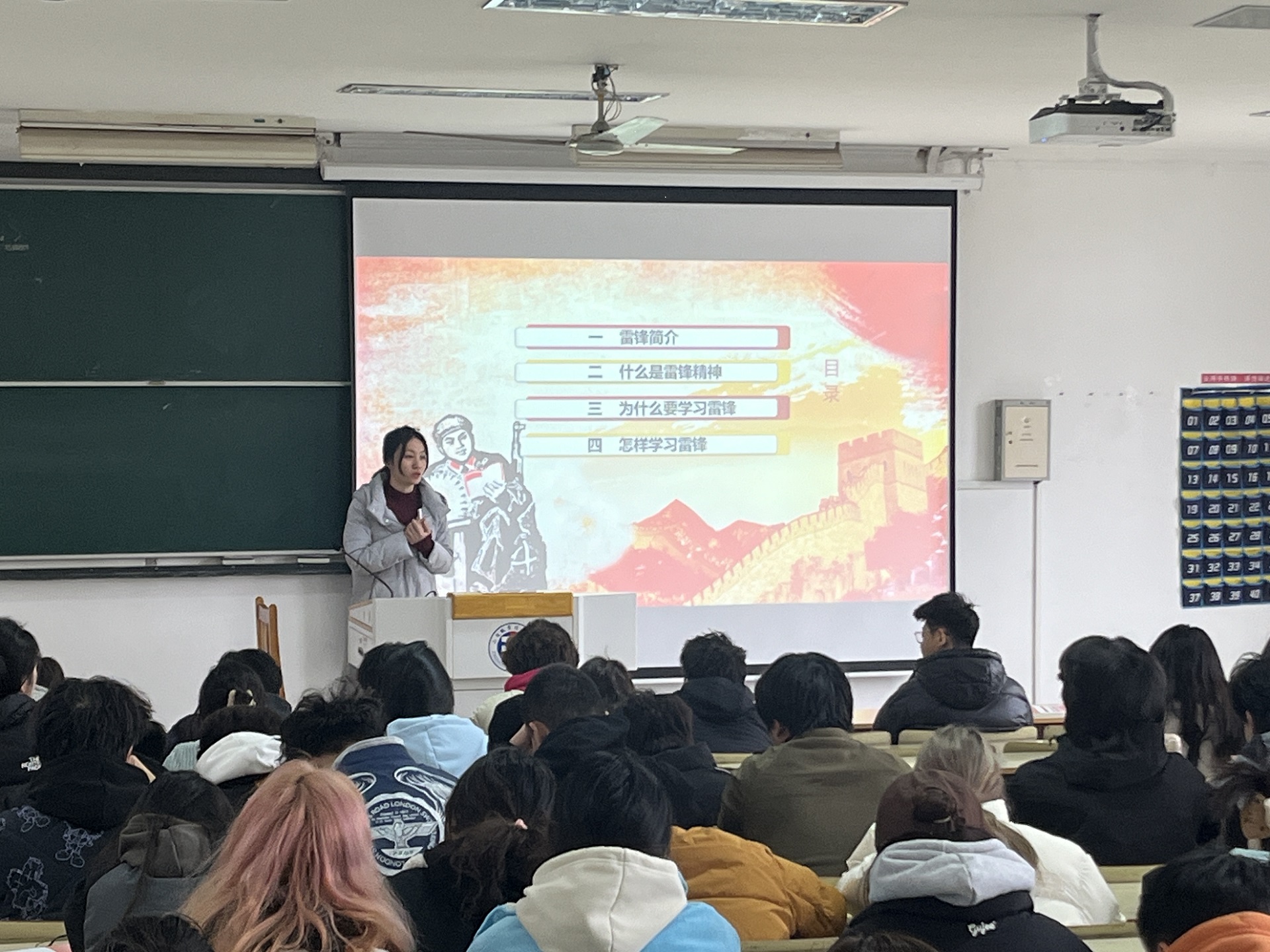 3月18日,支部书记杨春娟在庄严的国旗下给大一同学们上了一堂主题为“传承雷锋精神,共筑文明天博体育 ”的思政微课。她对雷锋精神的深刻内涵进行了阐述和解读,让同学们深刻了解什么是雷锋精神、怎样学习雷锋精神、如何弘扬雷锋精神以及如何做新时代雷锋精神的传承者和践行者。