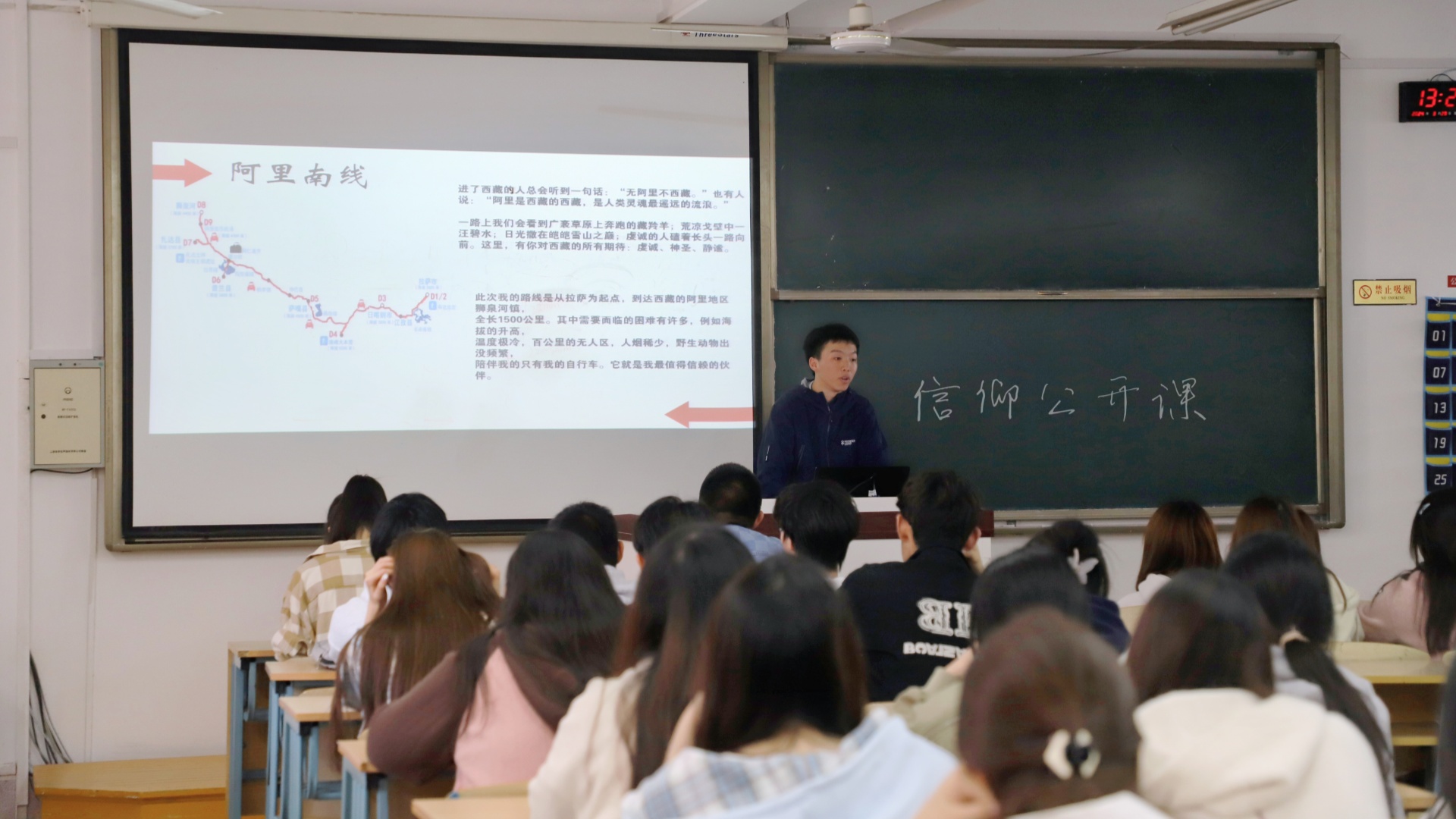 3月29日,艺术设计与建筑工程系举办了一场别开生面的信仰公开课,本次课程以“突破困境:挑战与成长的征程”为主题,邀请了22级同学韩季成作为主讲嘉宾。韩季成曾两次骑行穿越西藏,用双脚丈量了这片神秘而壮丽的高原,他的经历不仅是对体能的极限挑战,更是一次精神层面的洗礼与升华。