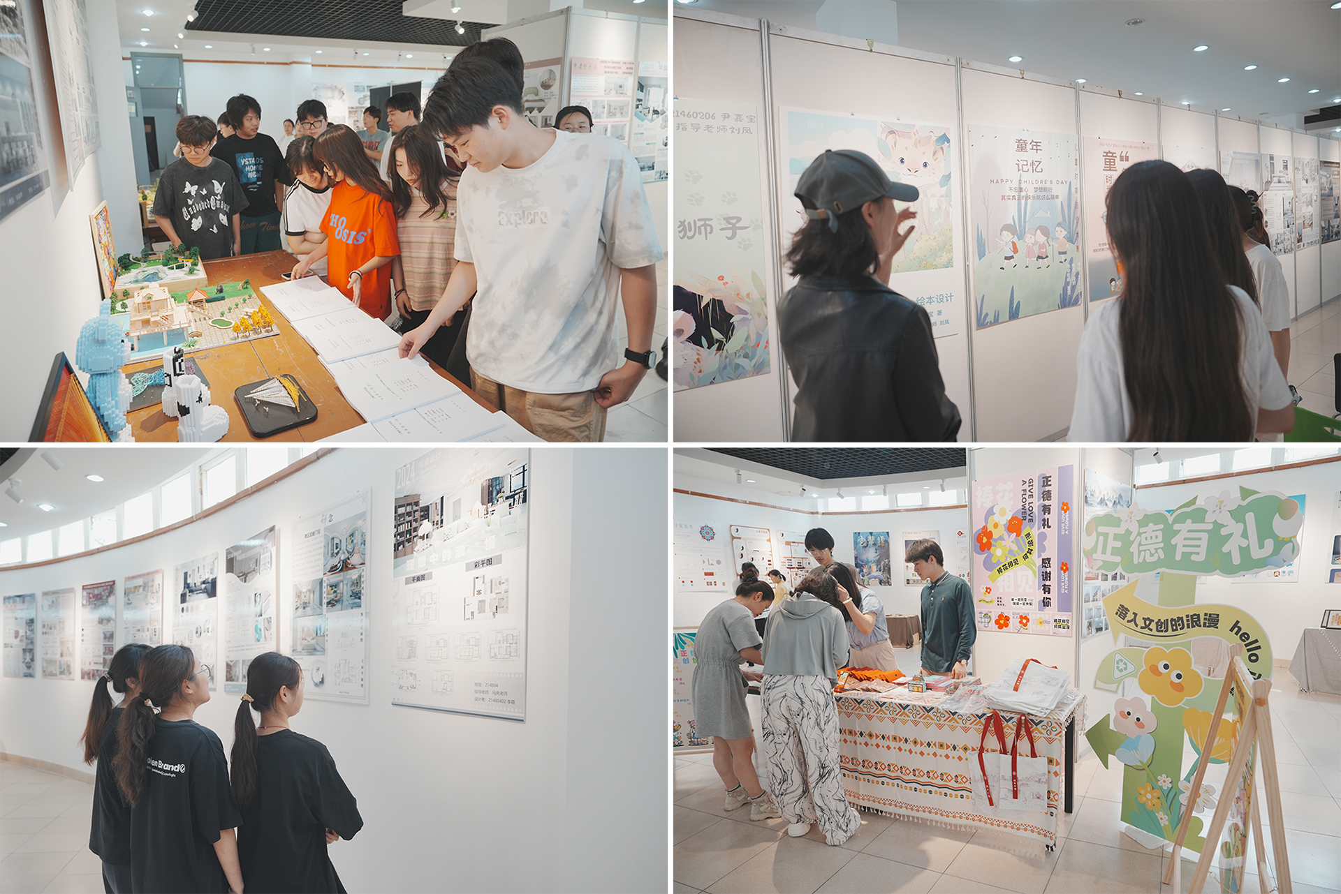 此次作品展展示了环境艺术设计、建筑室内设计、建筑装饰工程技术、工程造价、广告设计与制作、动漫制作技术、新闻采编与制作等7专业160余件优秀代表作品。作品融入了中华优秀传统文化、革命文化、社会主义先进文化,设计主题包含了城市更新、生态景观、旧房改造、养老空间优化、文化美育、乡村文化振兴等各类主题设计。表达了他们“传播真善美,传递正能量”的愿望,在今后的职业道路中继续传递工匠精神、传递精益求精追求完美的职业精神,传递爱心、传递信心的设计观。另外展览中还特别设置了“正德有礼”文创社团的展示活动,展现了文创产品的魅力和特色,为各位参观者和毕业生们留下独特的毕业回忆。