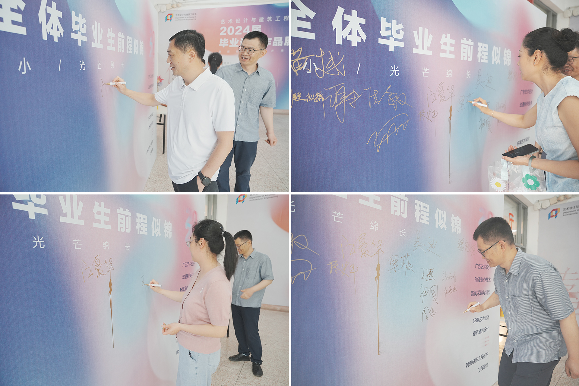 江爱华副院长对艺建系的专业建设、教学成果和教学理念给予了充分肯定,赞扬了本届毕业生的毕设作品所展现出来的专业水平和专业素养,并祝愿全体毕业生在未来的职业道路中越走越宽广,创作出更多的精品。梁薇副院长对艺建系紧扣时代主题,关注人民需求,把“设计为民”理念贯穿创新过程表示认可,对丰富天博体育 文化起到积极作用。