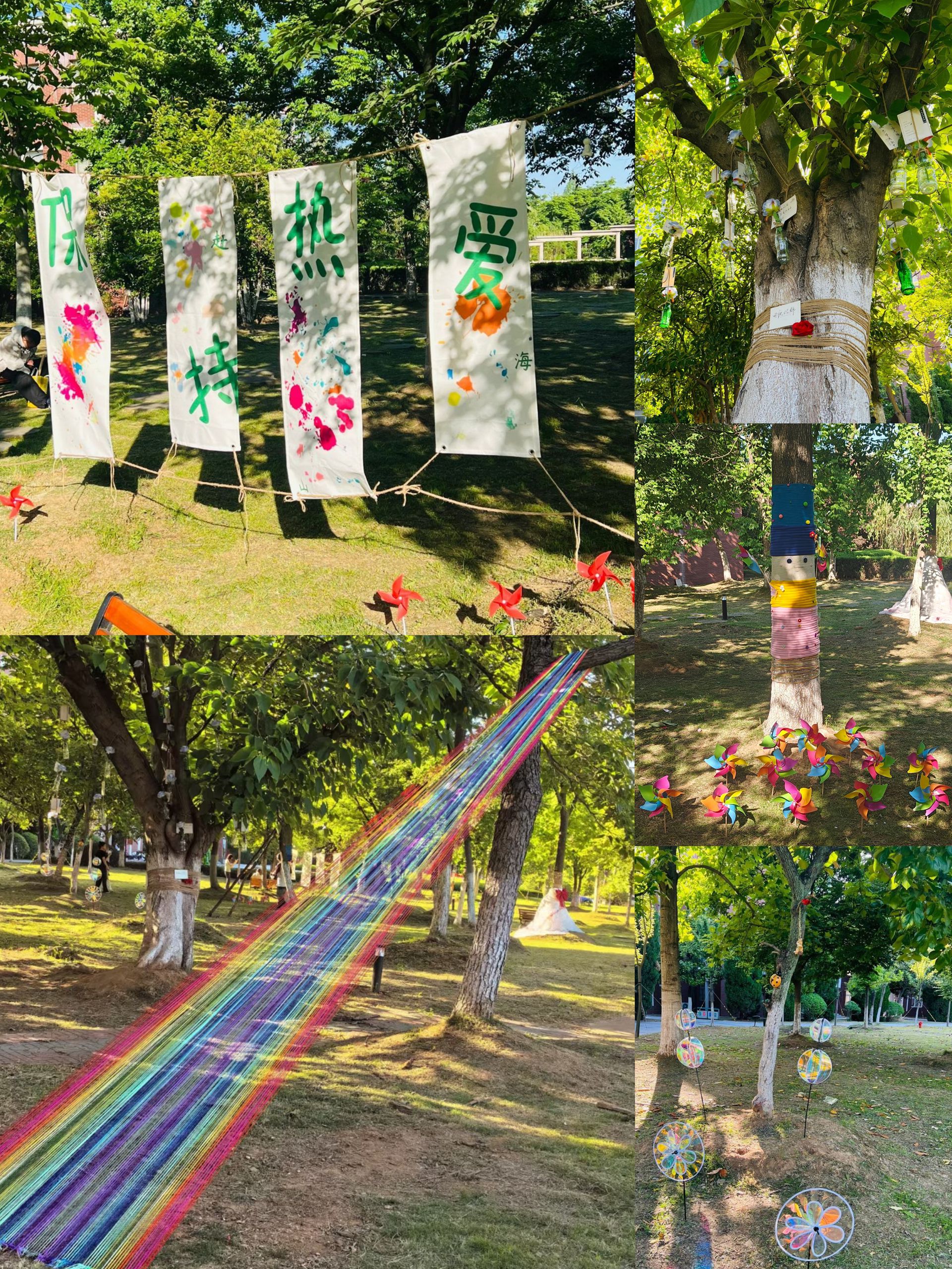 5月21日,在周倩老师的指导下,同学们参与了“天博体育 环境创建活动”。他们对钢琴湖畔的草坪进行了全面清洁和创意装饰,通过悬挂励志标语和摆放精美道具,为天博体育 注入了新的生机与活力,创造了一个更加舒适且富有激励性的学习环境。