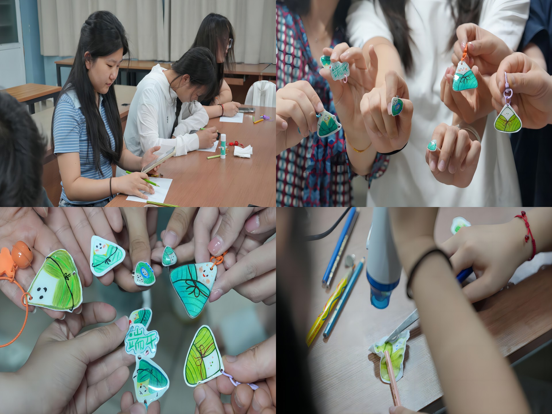 “端午临仲夏,时清日复长”。为了庆祝这一传统节日,弘扬中华民族的文化精髓,艺术设计与建筑工程系于6月4日成功举办了“粽”情端午,文化飘香——端午节手工艺活动。系主任周卫、系党支部书记杨春娟及各班班主任、辅导员一起参与到活动中,与同学们共同感受传统文化的魅力,亲手制作具有端午特色的热缩片手工艺品。