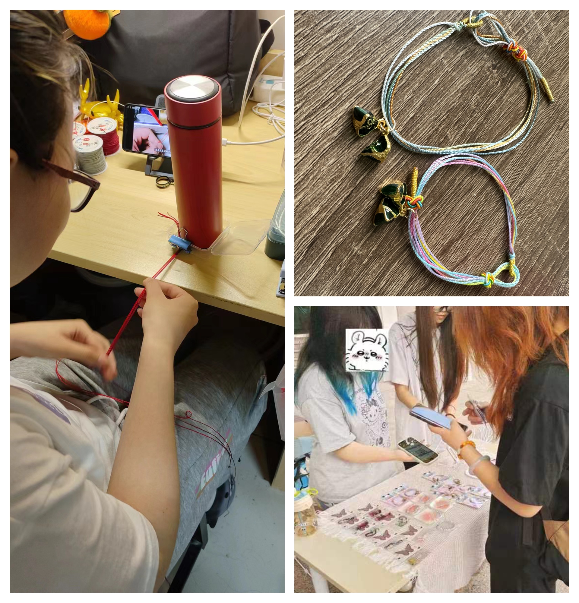 学子巧手制彩绳。同学们提前拿出准备好的材料,利用课余时间在宿舍进行编织,同学们自由选择自己喜欢的颜色,准备将手链编织出自己的特色。很快,一条条具有祈福纳吉美好寓意的五彩手链被制作出来。每一条交织的彩线不仅代表健康、幸福和美好,更将和谐、互助的同学情编织其中。