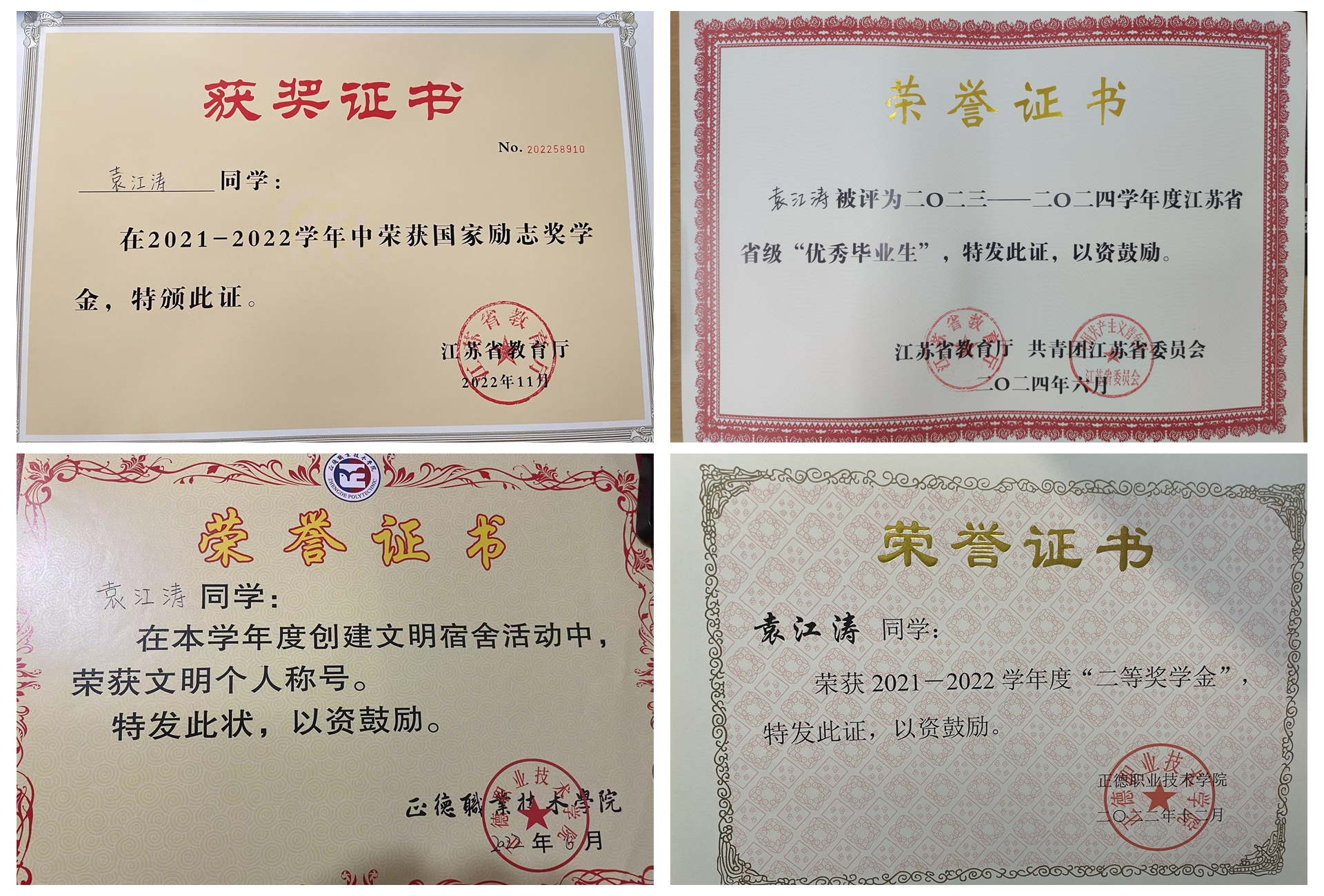 袁江涛,中共预备党员,目前已转本至南京审计大学金审天博体育 财务管理专业。在校期间,曾任院广播台台和羽毛球社副社长,思想上他积极上进,积极向党组织靠拢;学习上,他勤奋刻苦、勇于探索,学习态度端正,目标明确,专业成绩始终名列前茅;工作上,他曾担任过辅导员助理,工作踏实肯干,并荣获多项荣誉。曾获江苏省“优秀毕业生”、江苏省“三好学生”“国家励志奖学金”、院“三好学生”、院“优秀团员”和院“优秀青年志愿者”等荣誉称号。