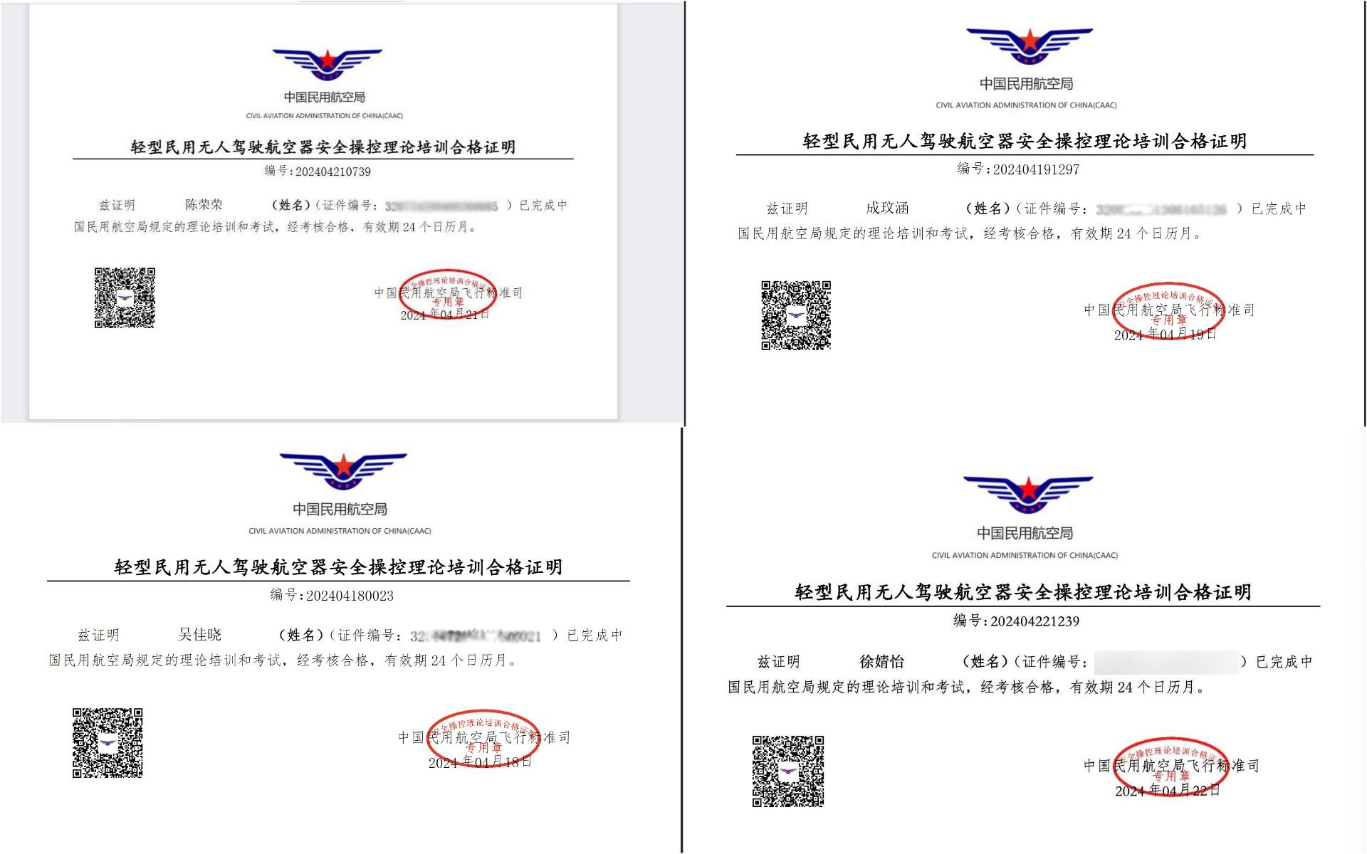 本学期,我系23级新闻采编与制作专业开设专业选修课《无人机操控与航拍》,近期班主任王子烜老师组织234901班同学参与民航局无人航空器安全操控理论培训合格考试培训,根据课程内容与管理规则要求,完成在线考试,全班同学都通过了考核,获得由民航局正式签署并盖章的合格证书(有效期两年),证明学员在无人机操控与航拍方面具备相应的专业技能与知识水平。
