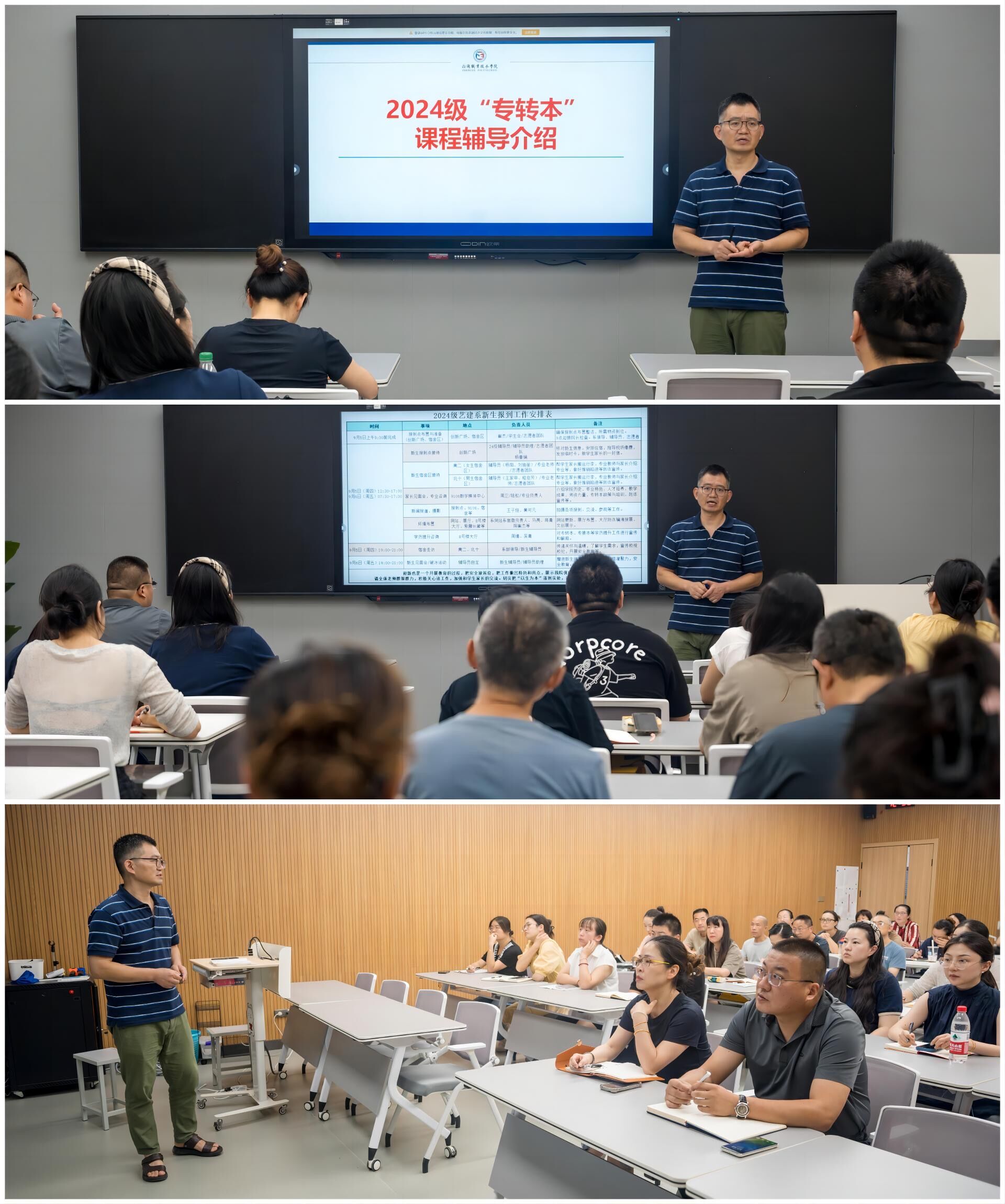 9 月 4 日,艺术设计与建筑工程系为确保 2024-2025 学年秋季学期新生入学迎新工作顺利开展以及推动专转本工作有效落实,召开了全体教职工会议,会议由系主任周卫主持。