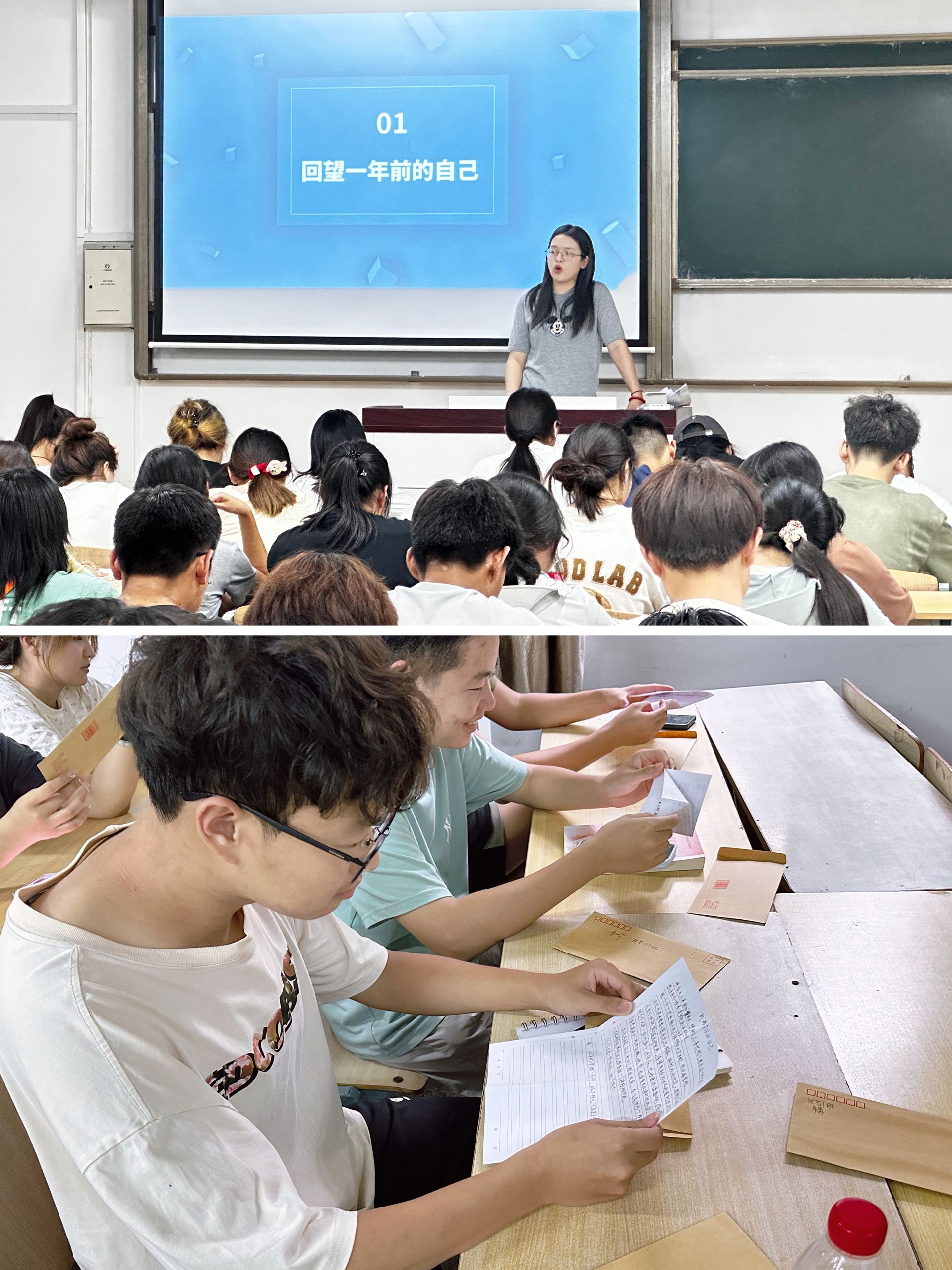 2023级环境艺术设计、建筑装饰工程技术专业的辅导员王思思开展了“回望一年前的自己”主题班会。活动中,同学们重翻起一年前初入天博体育 时撰写的《致一年后的自己》信件,随着一封封信件的缓缓展开,大家共同回顾了那份纯真的初心,将字里行间的梦想与一年间所经历的点滴成长相对照,同学们发现自己正一步步靠近那些曾经设定的小目标。王老师借此契机,鼓励大家继续秉持初心,砥砺前行,在未来的道路上不断追求卓越。