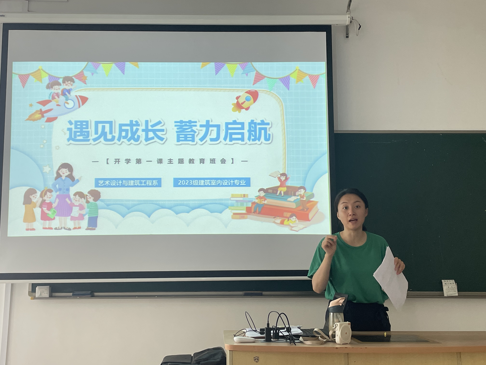 2023级建筑室内设计专业辅导员魏玮以“遇见成长,蓄力启航”为主题,内容从“过有理想的大学生活”“过有意义的大学生活”“过健康的大学生活”三个方面,引导学生树立正确的学习目标、多维度发展、关注心理健康。同时强调安全和学风教育,引导同学们做好新学期规划,积极参加团学活动,提升自己的综合素质和工作能力。