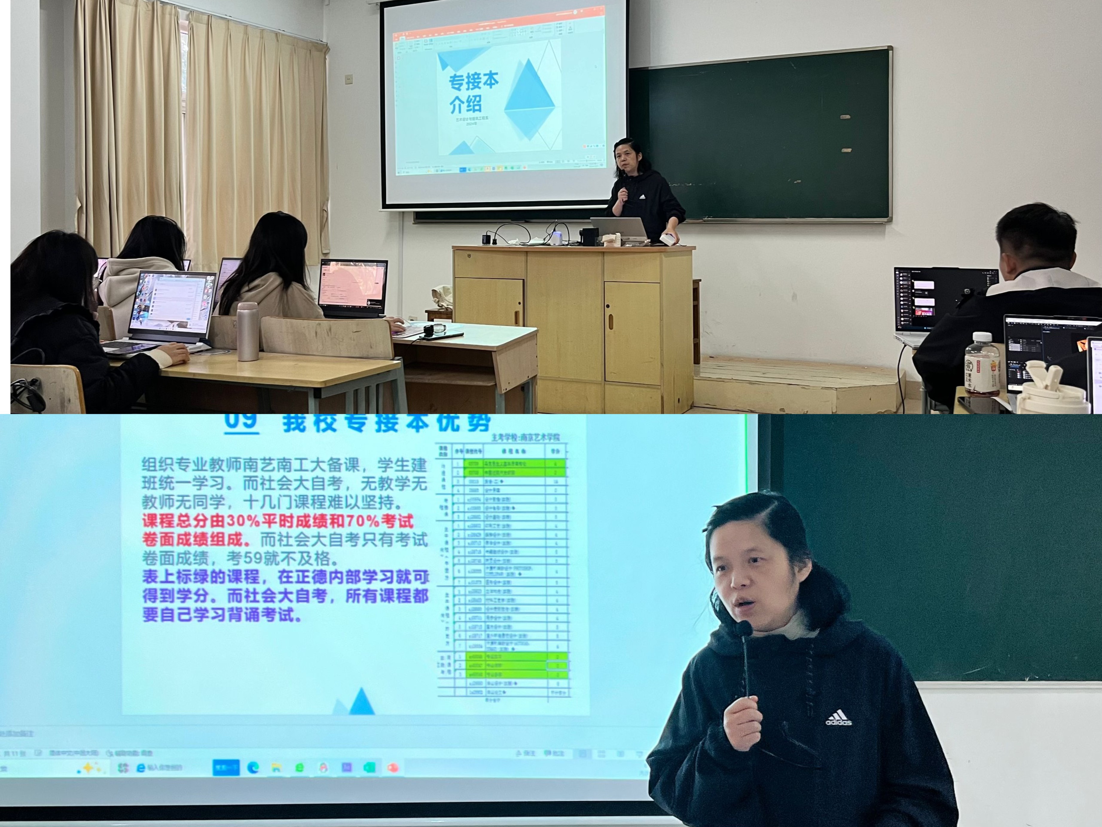 近日,艺术设计与建筑工程系举办了一场别开生面的升学之路宣讲会,旨在帮助2023级全体学生深入了解专转本、专接本的升学途径,以及我校独特的升学优势,并为他们未来的学业规划指明方向。宣讲会由经验丰富的周倩、吴青和王家甲老师分班一一主讲,内容涵盖了转本、接本、升本的区别,我校转本辅导班及接本项目的优势,以及英语薄弱学生选择接本的独特优势。宣讲会最后,周卫主任发表了重要讲话,提出了三点殷切希望。