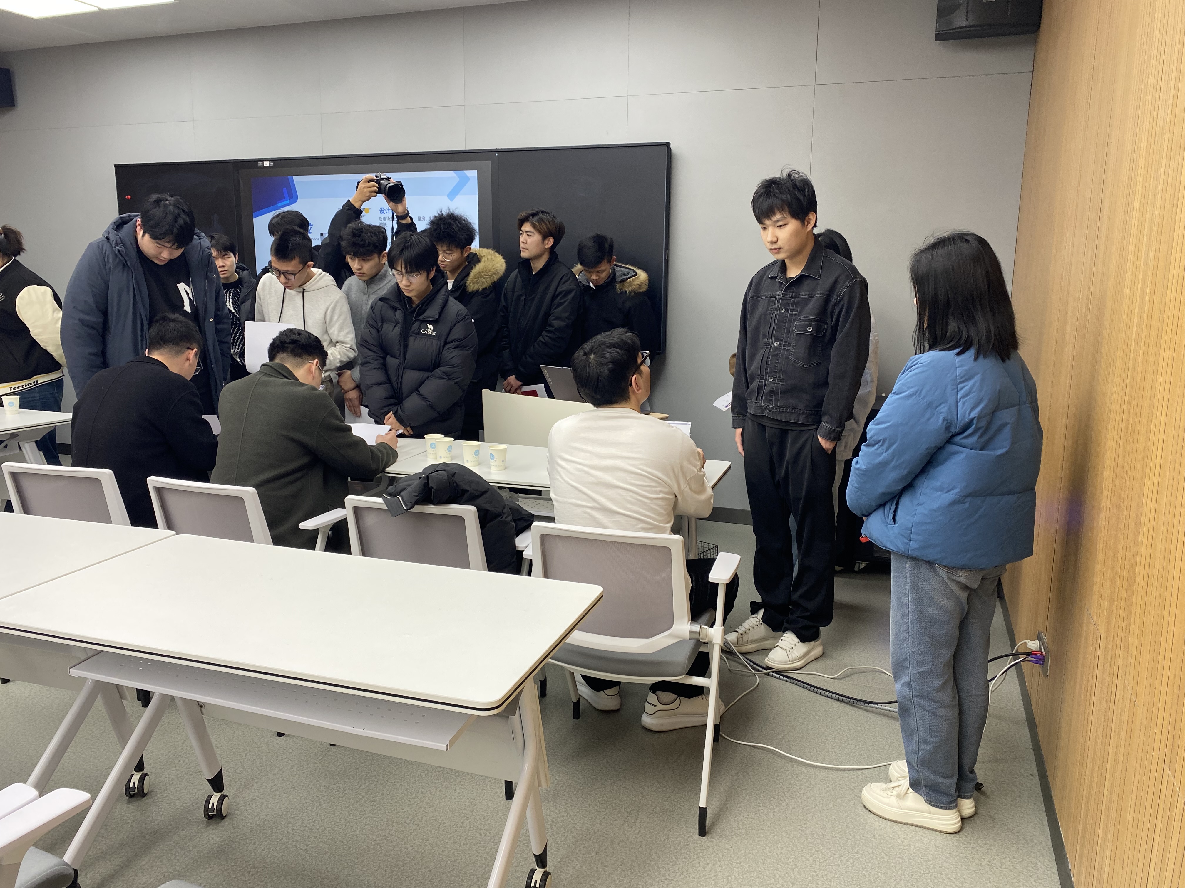 宣讲会结束后,南京铭望装饰设计有限公司的师菊慧、陆杰、梁东海、王纪纲等多位资深设计师,对同学们进行了一对一的面试指导。面试环节中,天博体育 同学们积极准备,纷纷递交简历、进行自我介绍,并通过互加微信等方式与用人单位建立了初步联系。与会的设计师们以热情、细致、耐心的态度,与同学们进行了深入沟通,会场气氛热烈而活跃。