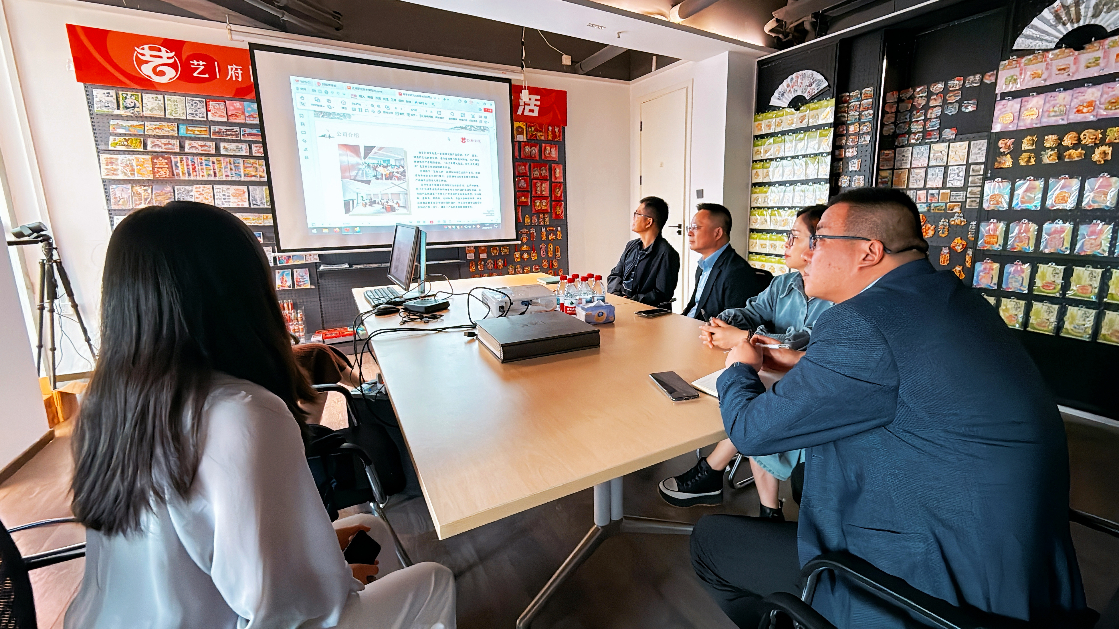 在艺府文化经理杜燕的陪同下,孙雷一行实地考察企业设计中心与文创展厅,系统了解艺府文化在文化创意领域的创新成果、产品设计理念及产教融合实践案例。