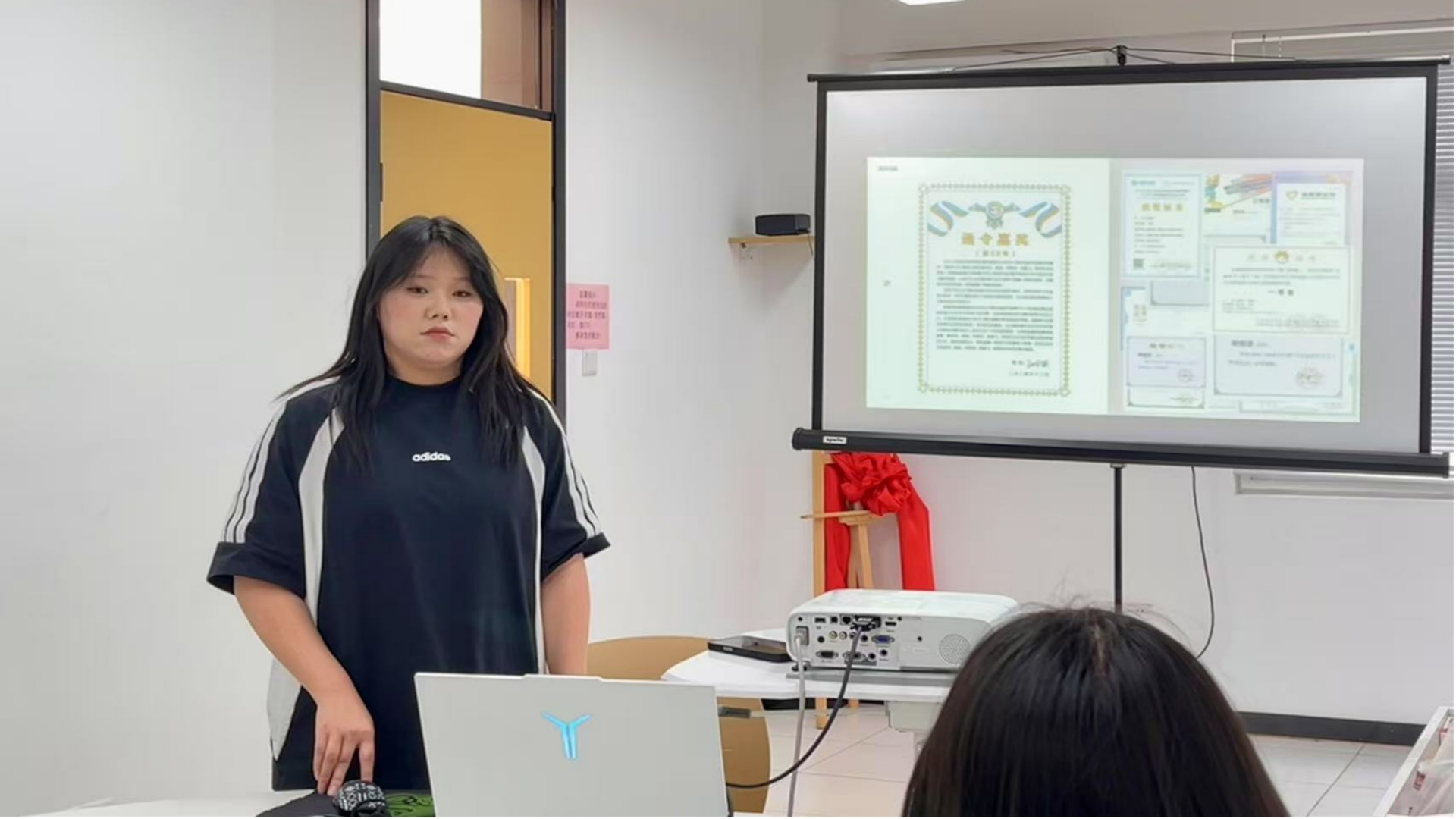 常樱译同学以自身参赛作品为例,从“选题策划”“团队协作”“技术落地”三个维度展开分享。她提到,数字媒体类赛事需兼具创新性与实用性,比如获奖作品,既结合了地方特色元素,又运用了Unity引擎和3D建模技术,最终通过多轮测试优化细节,才在答辩环节脱颖而出。此外,她还强调“时间管理”与“心态调整”的重要性,并现场展示了快速制作特效的实用技巧,引发台下阵阵惊叹。