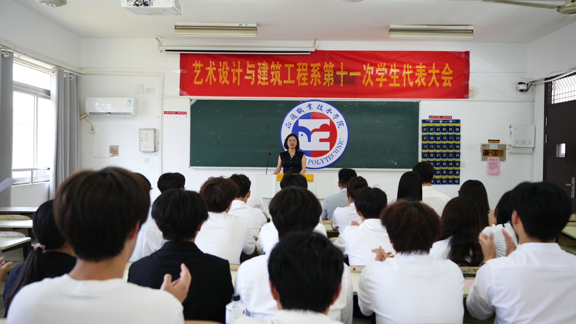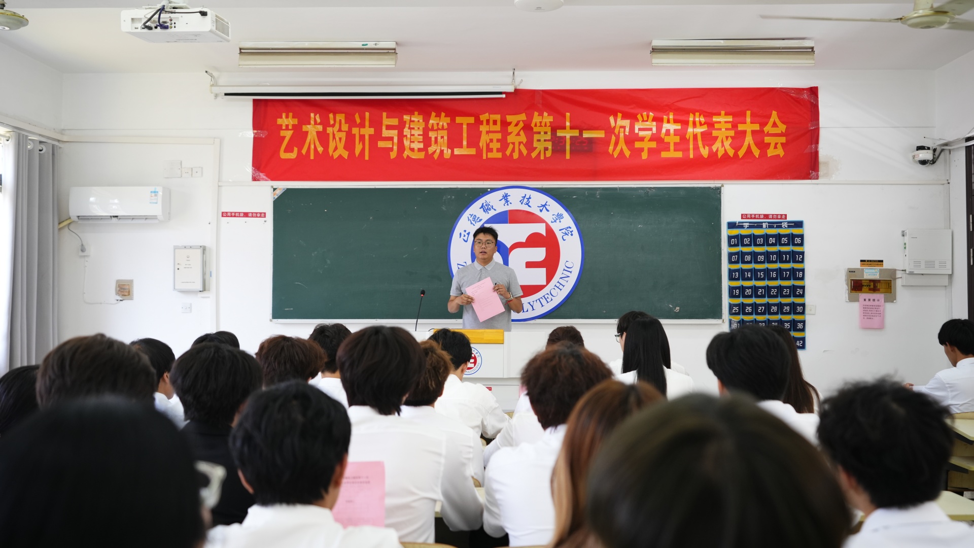 2025年6月5日,正德职业技术天博体育 艺术设计与建筑工程系第十一次学生代表大会在教室2305顺利召开。本次大会以"凝聚青春力量,勇担时代使命"为主题,全面总结了过去一年学生会的工作成果,投票选举了新一届学生会主席团成员,并明确了未来工作的目标和方向。