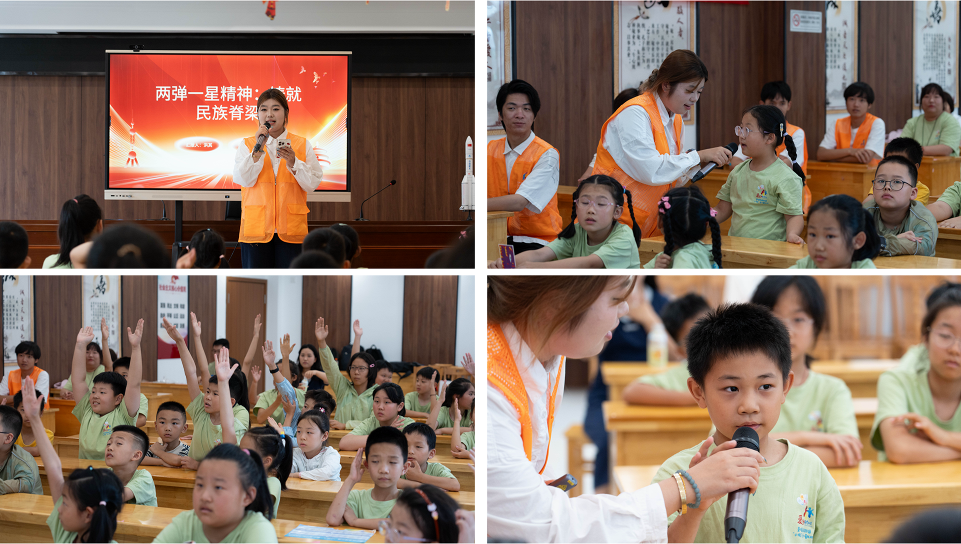 6月30日,实践团队走进南通市幸福街道社区,开展了“传承‘两弹一星’精神”主题活动。团队成员通过精心制作的PPT,生动形象的方式为社区青少年讲述了元勋们的感人事迹与“两弹一星”精神的深刻内涵。孩子们听得津津有味,眼中闪烁着好奇与敬佩的光芒。宣讲结束后,互动问答环节将活动推向高潮,孩子们积极踊跃回答问题,答对者收获了小分队们精心准备的小礼物。