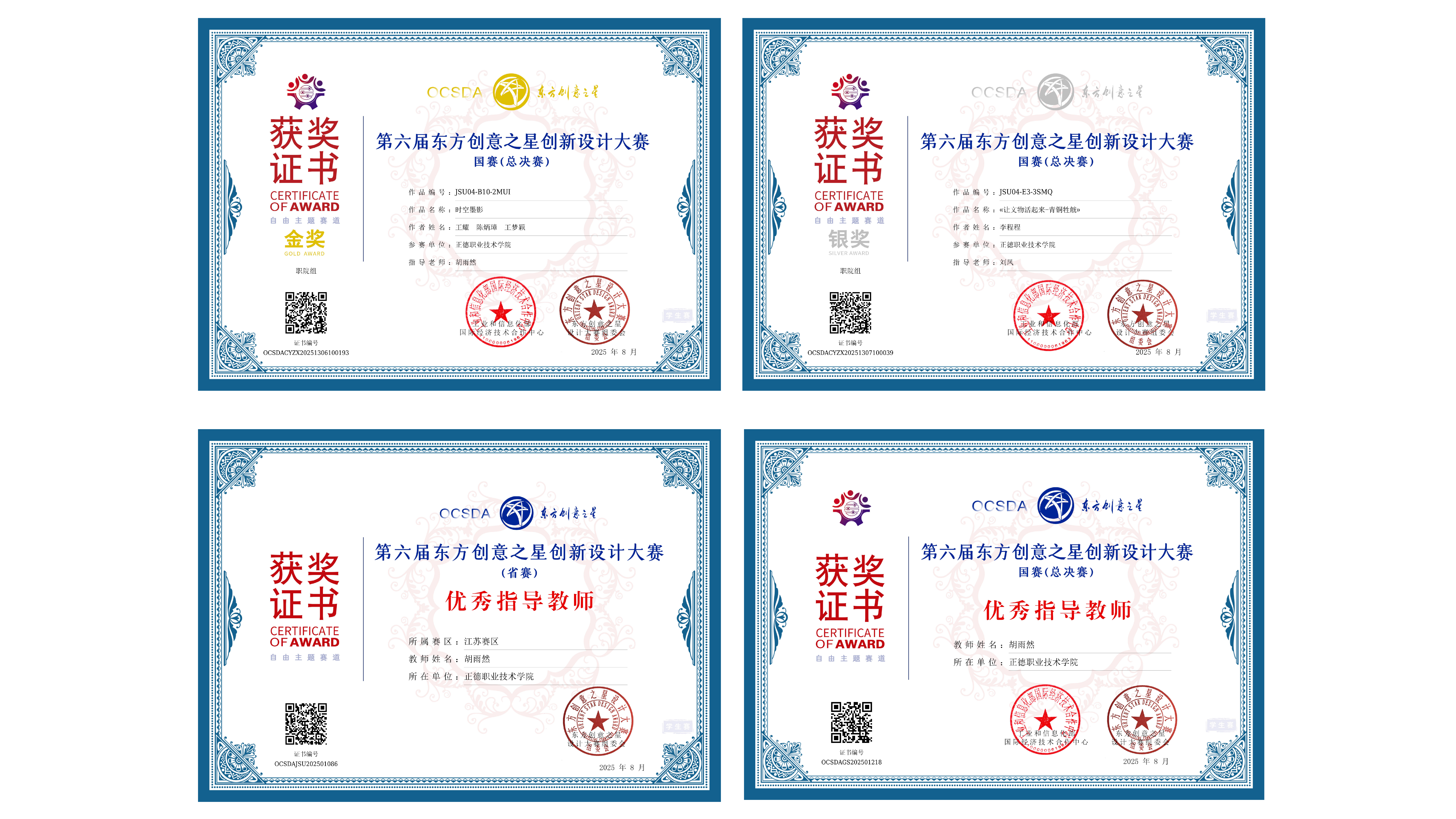 在刚刚落幕的第六届“东方创意之星”设计大赛中,天博体育 艺术设计与建筑工程系数字媒体技术专业24级学生取得了优异成绩,展现了卓越的创造力和专业技能。胡雨然老师凭借出色的指导,分别荣获省赛和国赛优秀指导教师奖,彰显了天博体育 专业教学的高水平。