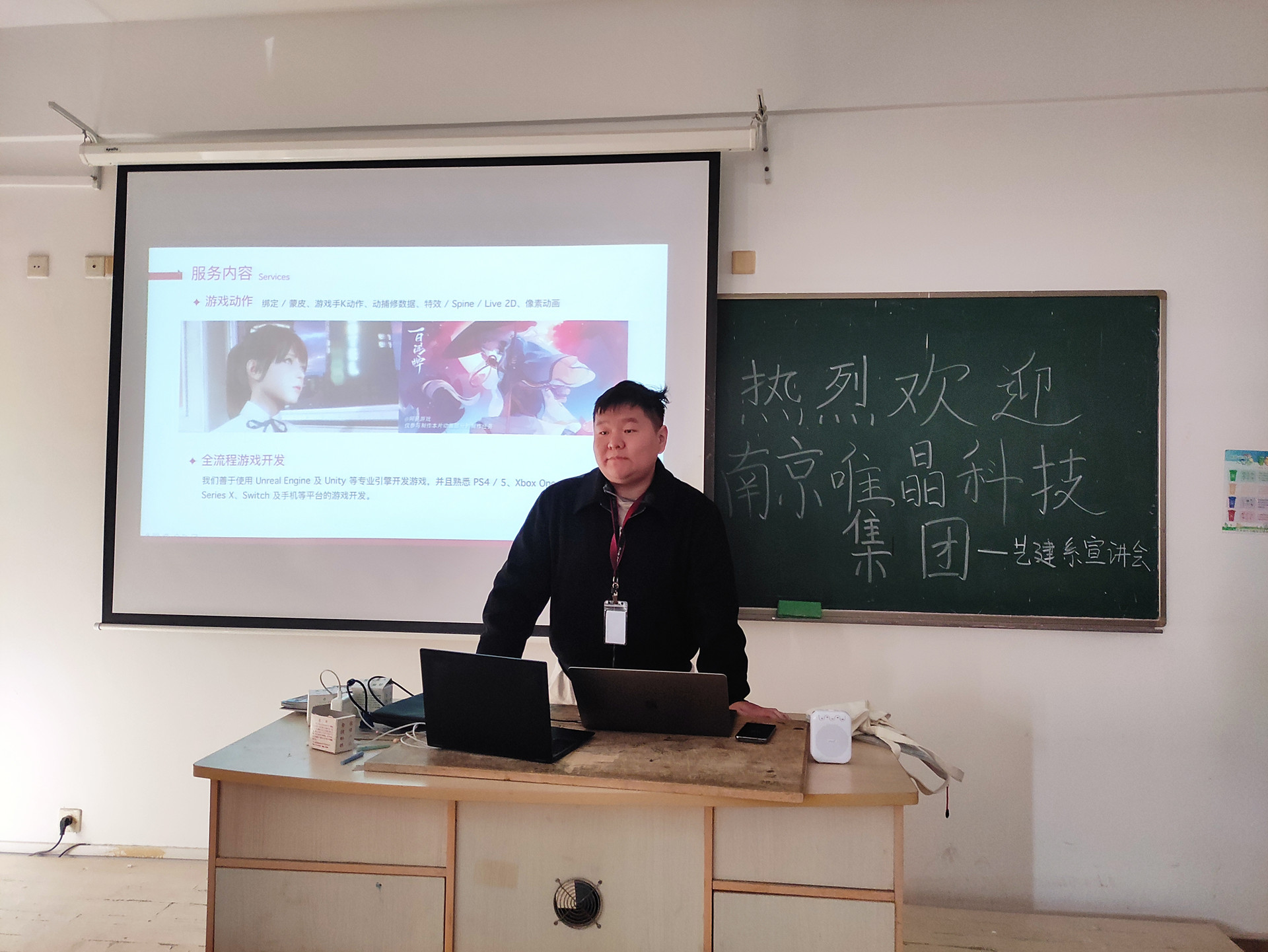 为了促进2021级学生高质量完成岗位实习,加深学生对用人单位及行业的认识,2023年3月27日,艺术设计与建筑工程系邀请南京唯晶信息科技有限公司负责人进校宣讲。2021级全体动漫制作技术专业的同学参加了宣讲会。