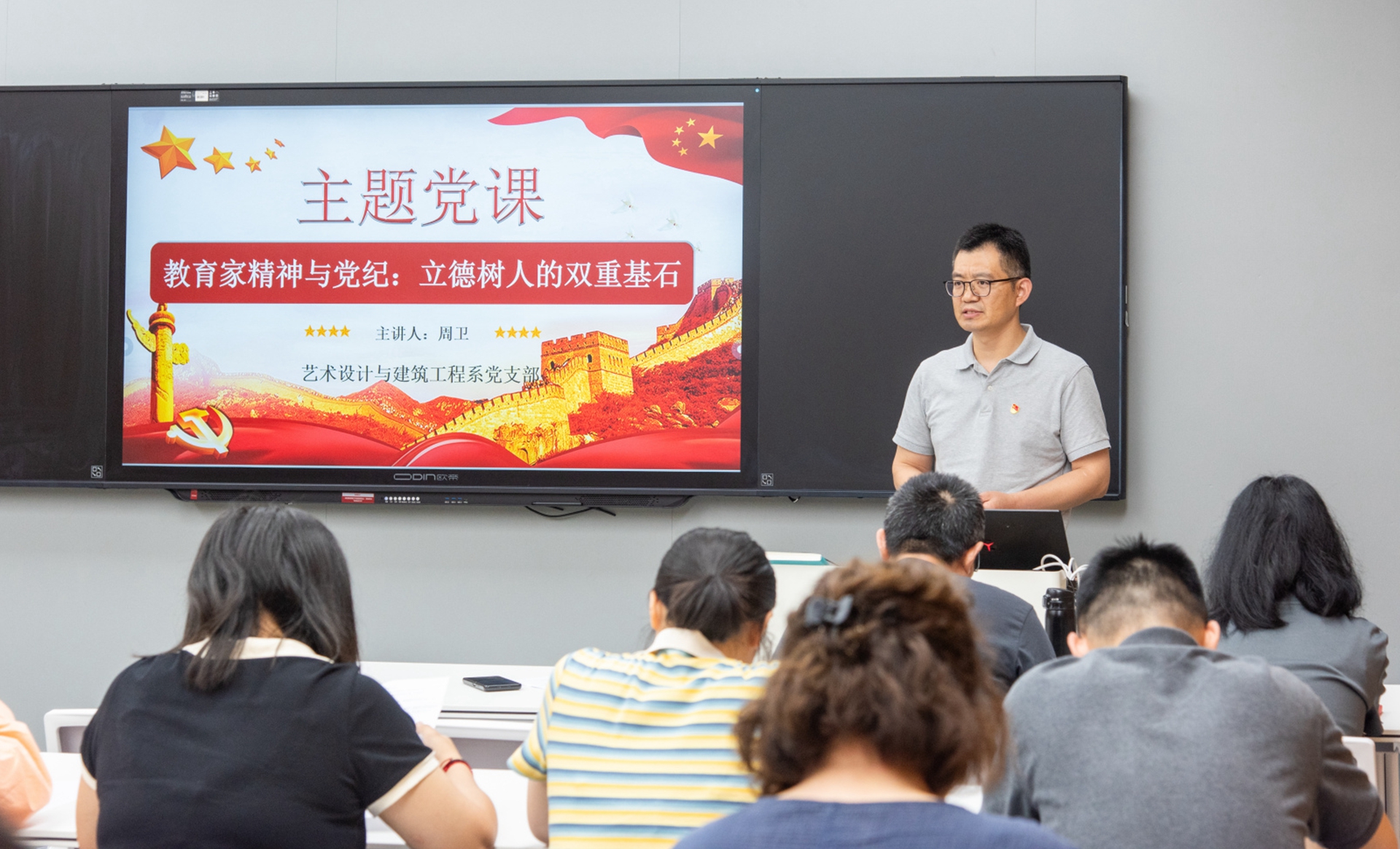 随后,系主任、支部副书记周卫以《教育家精神与党纪:立德树人的双重基石》为题,为全体党员讲授了一堂生动的党课。周书记结合党的教育方针和教育家的精神内涵,深入浅出地阐述了党纪与立德树人之间的紧密联系,引导党员教师树立正确的教育观和人才观,自觉践行社会主义核心价值观。