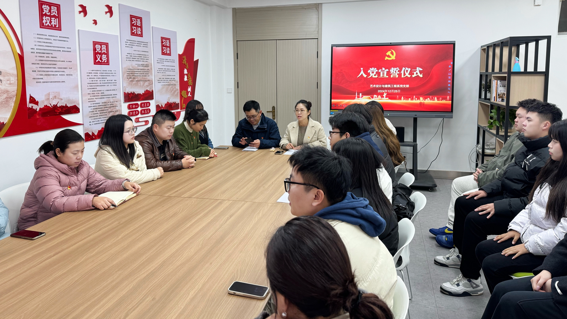 2024年12月25日下午,为切实推动新发展党员深植信仰根基、明晰党员使命、筑牢精神支柱,并全力彰显先锋引领力量,艺术设计与建筑工程系在8202“艺心之家”活动室隆重举行了一场意义深远的新党员入党宣誓仪式。此次仪式由系党支部书记杨春娟主持,出席仪式的领导包括系党支部书记、系主任、全体支委委员、系第二党小组全体成员、11名新发展的预备党员以及入党积极分子代表。