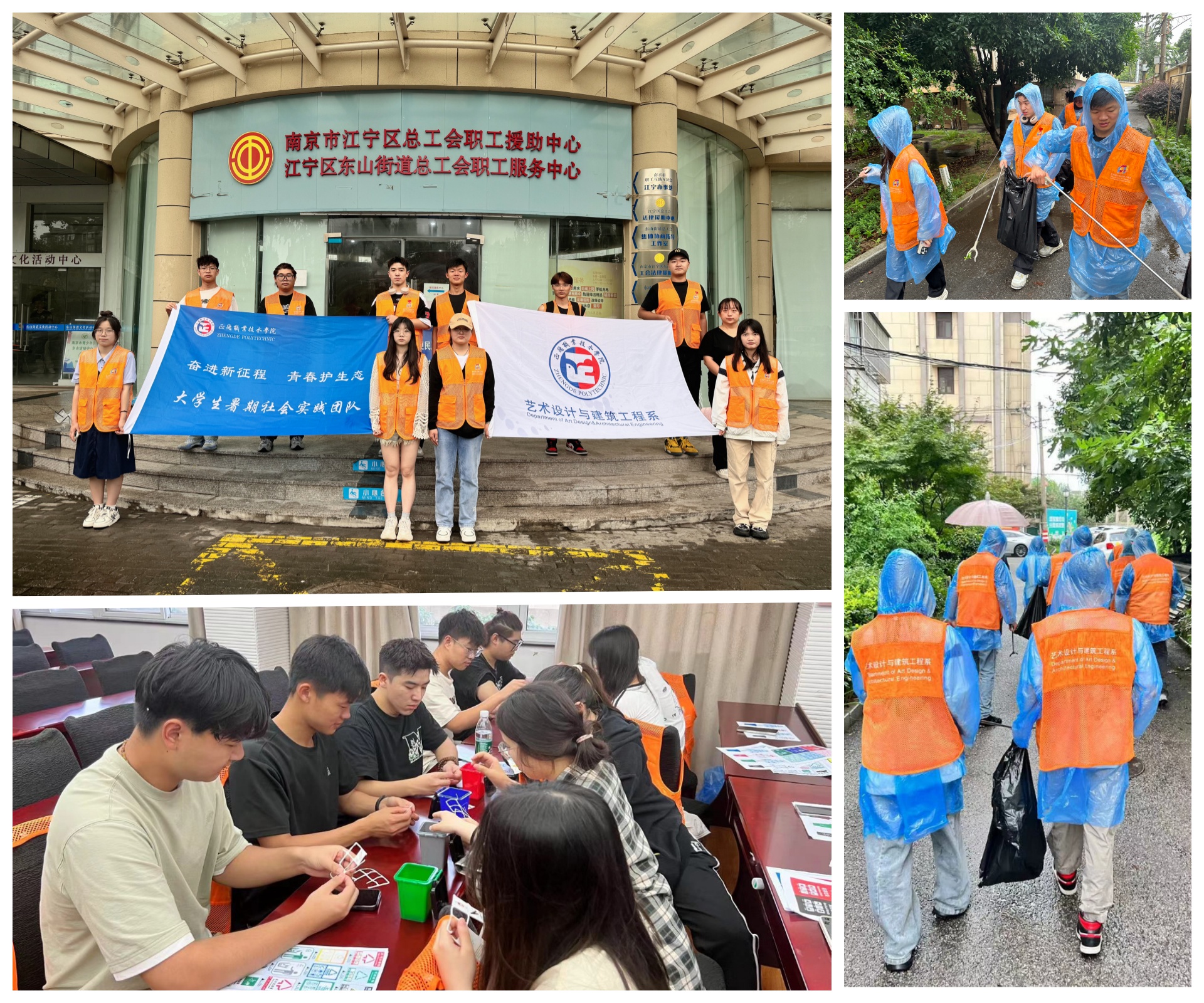 “奋进新征程 青春护生态”暑期社会实践团队于2024年6月28日至7月3日深入江宁区东山社区,开展“垃圾分类·青春助力”暑期实践活动。学生们在社区工作人员的带领下,学习垃圾分类知识,参观垃圾分类设施,并积极参与实际分类与清理工作。他们冒雨穿梭在社区中,捡拾散落垃圾,将理论知识转化为实际行动,为改善社区环境贡献力量。此次活动不仅锻炼了学生们的实践能力,还增强了他们的环保意识和社会责任感,为生态文明建设注入了青春活力。