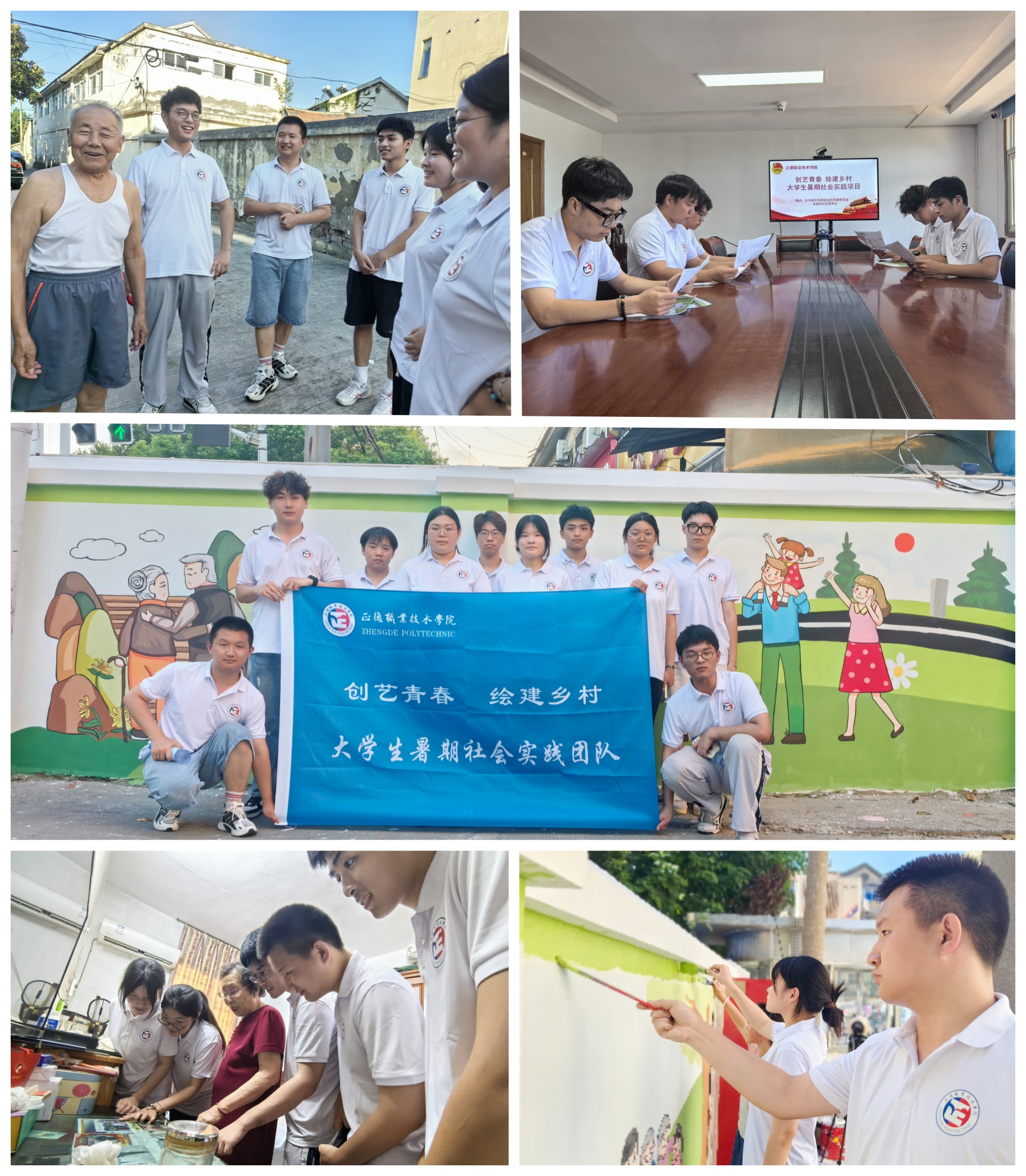 与此同时,“创艺青春 绘建乡村”小分队满怀热忱地踏入了南京市雨花台区西善桥街道古遗井社区,开展为期五天的暑期社会实践活动。小分队成员们利用专业技能,在地勘新苑小区精心绘制了多幅主题鲜明、色彩丰富的文化墙,内容涵盖关爱老人、守护儿童、文明养犬、垃圾分类等,不仅美化了社区环境,也传递了积极向上的价值观。