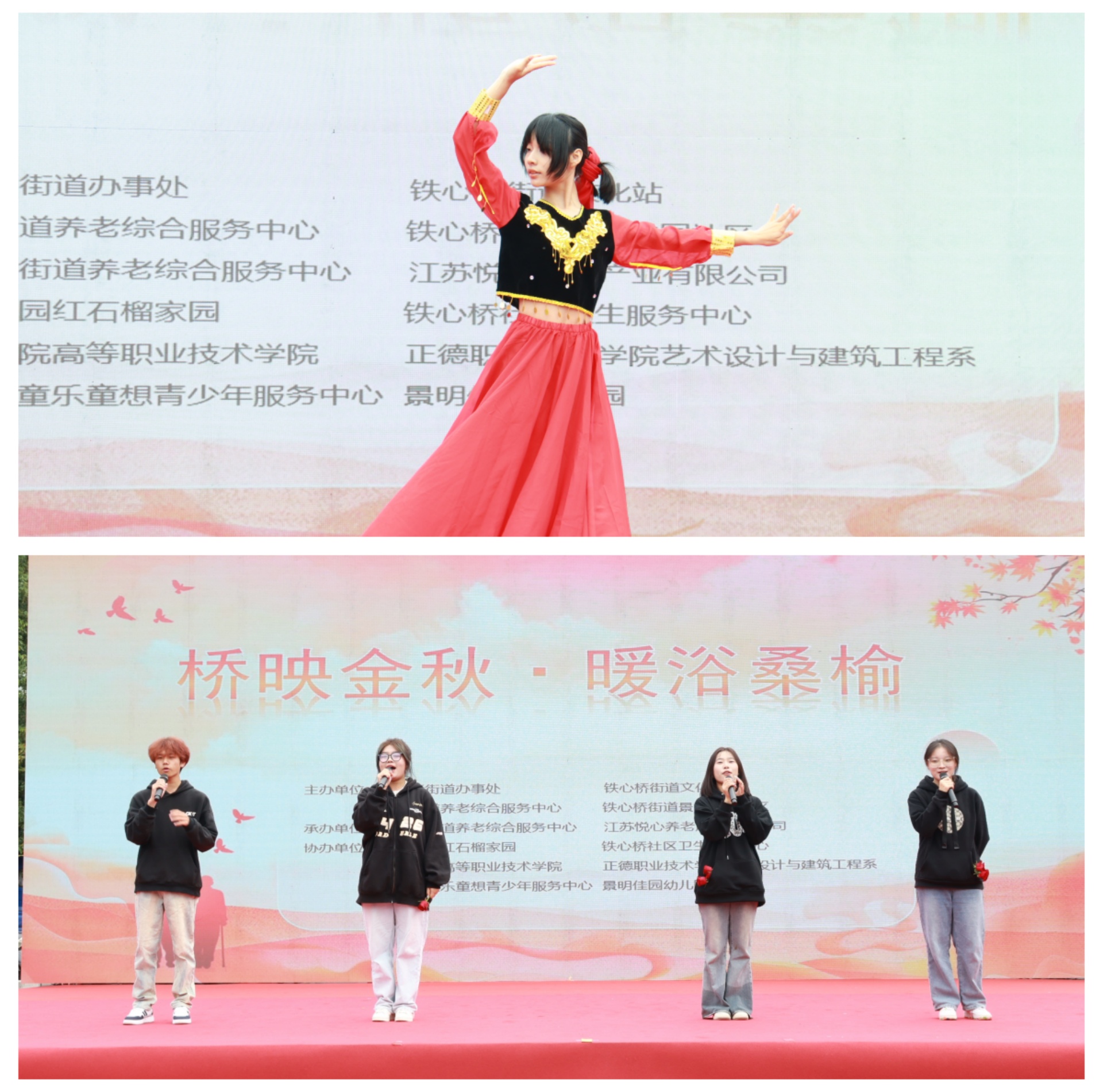 共建仪式结束后,各共建单位进行了自组织风采展示。艺术设计与建筑工程系的学生志愿者们带来了“维吾尔族组合民族舞”和“九九重阳节 歌声暖万家”两项精彩表演,赢得了社区居民的阵阵掌声和喝彩。