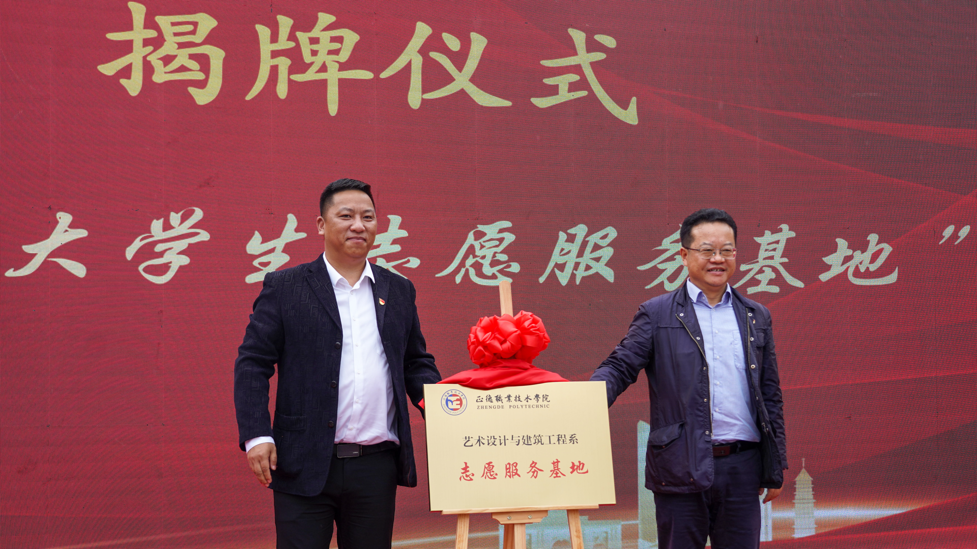 仪式现场,双方代表共同为“大学生志愿服务基地”揭牌,正德职业技术天博体育
