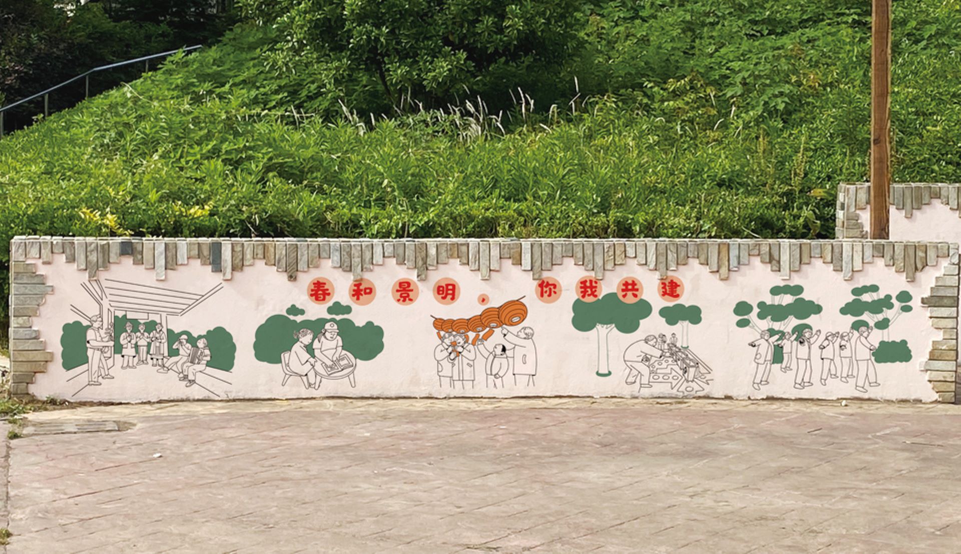 来自新闻、建装、环艺、数媒、室内专业的志愿者在徐嘉嘉老师的带领下来到景明佳园社区进行墙绘,受到了社区居民的热情接待。绘画前期徐嘉嘉老师在认真听取社区负责人的意见与要求后,确定了以“清心养廉”传统文化为主题,先后完成了50余幅主题设计草稿,精选3幅非常完美的作品进行拼接绘制。接下来,大家迅速换好工作服,准备好工具,分工开始工作,有的负责绘图勾边,有的负责调色上色。经过2天的努力,第一幅墙绘作品跃然眼前,样和的画面为社区增添了一道文明风景。社区工作人员和居民参观后,对志愿者们的初步劳动成果十分满意。剩余的墙面也将在天气晴好的日子继续完成,为共建单位的党建引领工作尽自己的一份力,把所学的专业技能用在实处。