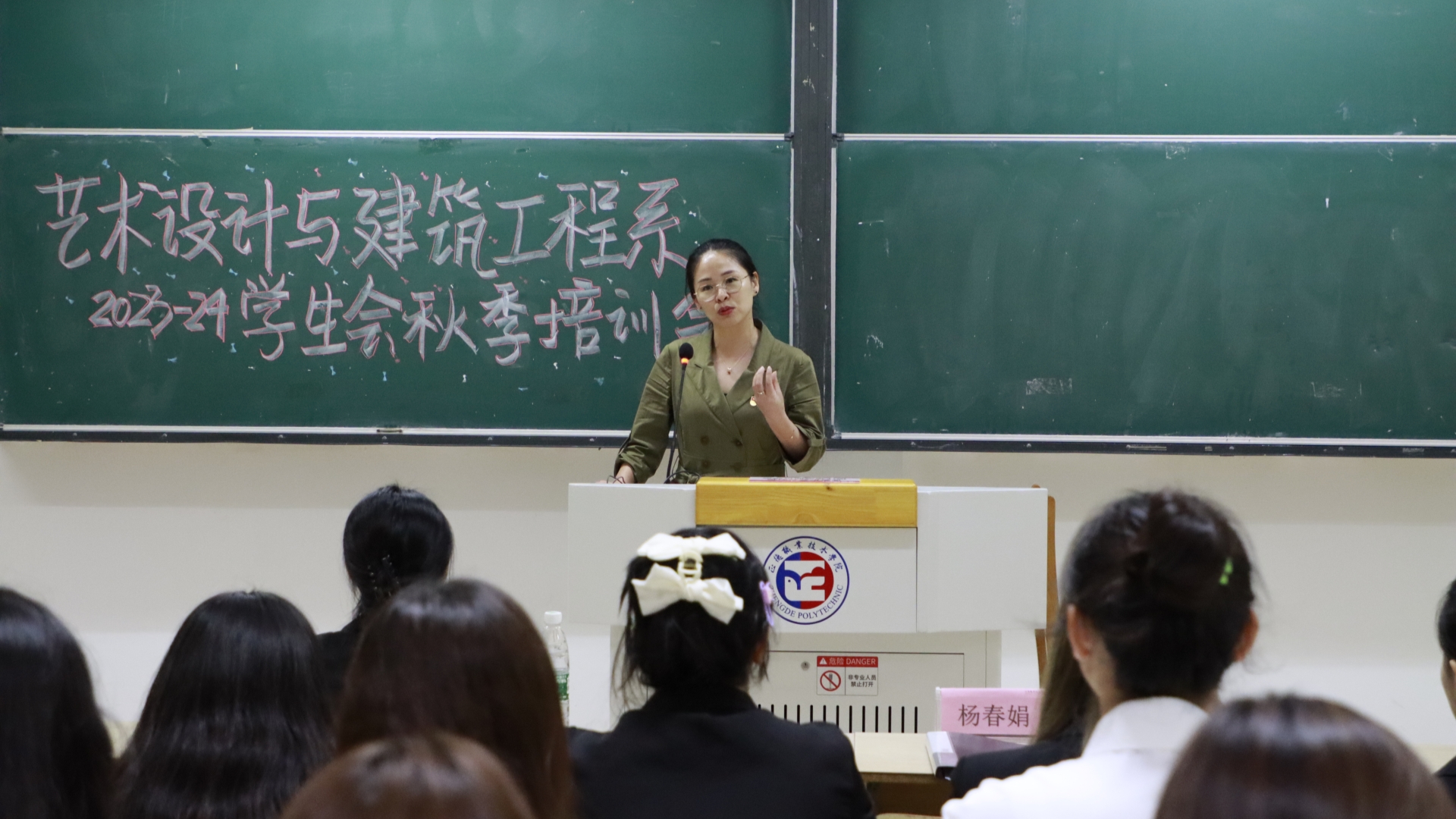 学期伊始,万象更新。为了进一步提高艺术设计与建筑工程系学生干部的整体素质,加强学生队伍的凝聚力,强化学生干部的自律意识,提高工作效率,保证工作的连续性,使学生干部能更好地服务天博体育 、服务同学,有效开展工作。2023年9月26日晚上,艺术设计与建筑工程系在1202阶梯教室召开了学生干部培训会,本次会议由学生会外联部部长庄宝佳主持,系党支部书记杨春娟、团总支书记崔杰参加本次活动。