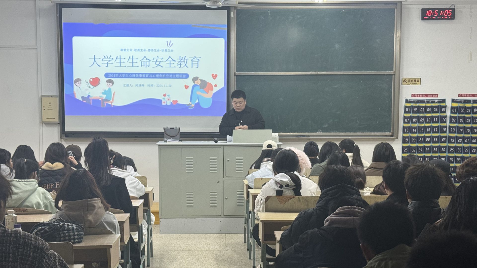 活动开展的过程中,各班级通过主题常识普及教育,播放教育短片视频、情景再现及模拟演练等形式,用通俗易懂的语言,生动形象、贴近大学生真实生活的案例,向学生们展示了生命安全的重要性以及如何保护好自己的生命安全。在心理健康教育环节,通过大学生常发的心理问题讲解,向学生们科普心理健康相关知识,教会学生识别自身或身边同学可能存在的心理危机信号,引导学生重视心理健康,同时学会自我调适的基本技能,鼓励学生在遇到心理困惑时,积极向学校心理中心和江苏省大学生心理热线等平台进行求助或到医院心理科室进行诊疗,专业评估,切不可讳疾忌医。