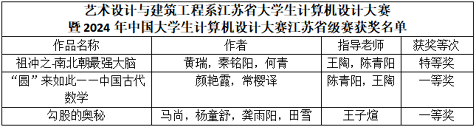 参与此次比赛的作品共1658件,南京大学、东南大学等90所江苏省高校参与。经过激烈角逐,我系获得特等奖1项,一等奖2项的优异成绩。其中由黄瑞、秦铭阳,何青三位同学设计制作的项目《祖冲之-南北朝最强大脑》获得特等奖,该项目指导教师王陶、陈青阳获得优秀指导教师奖。
