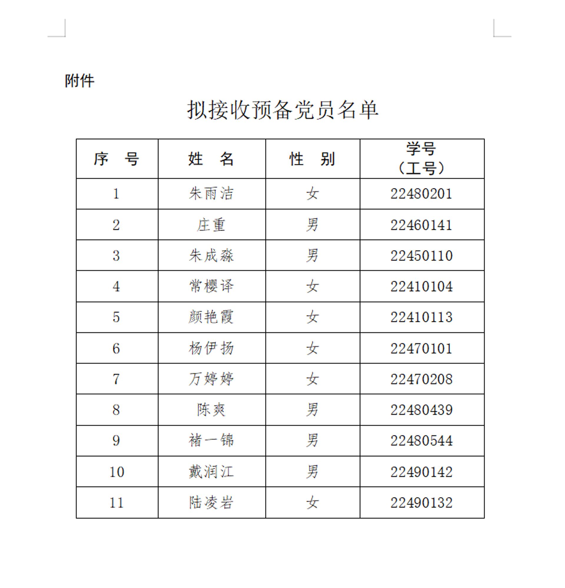 经党组织培养考察,艺术设计与建筑工程系党支部2024年下半年拟接收11名同志(名单附后)为中共预备党员。根据《中共正德职业技术天博体育 委员会发展党员工作实施细则》文件精神,党员和群众对发展以上同志为中共预备党员如有异议,可以采用口头或书面形式于11月26日前,向艺术设计与建筑工程系党支部反映。