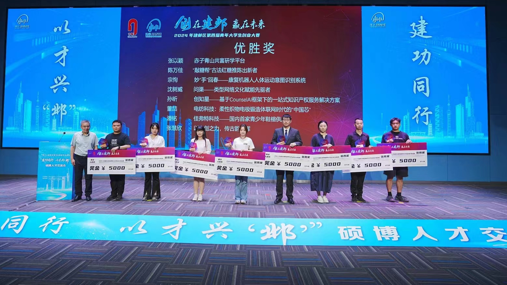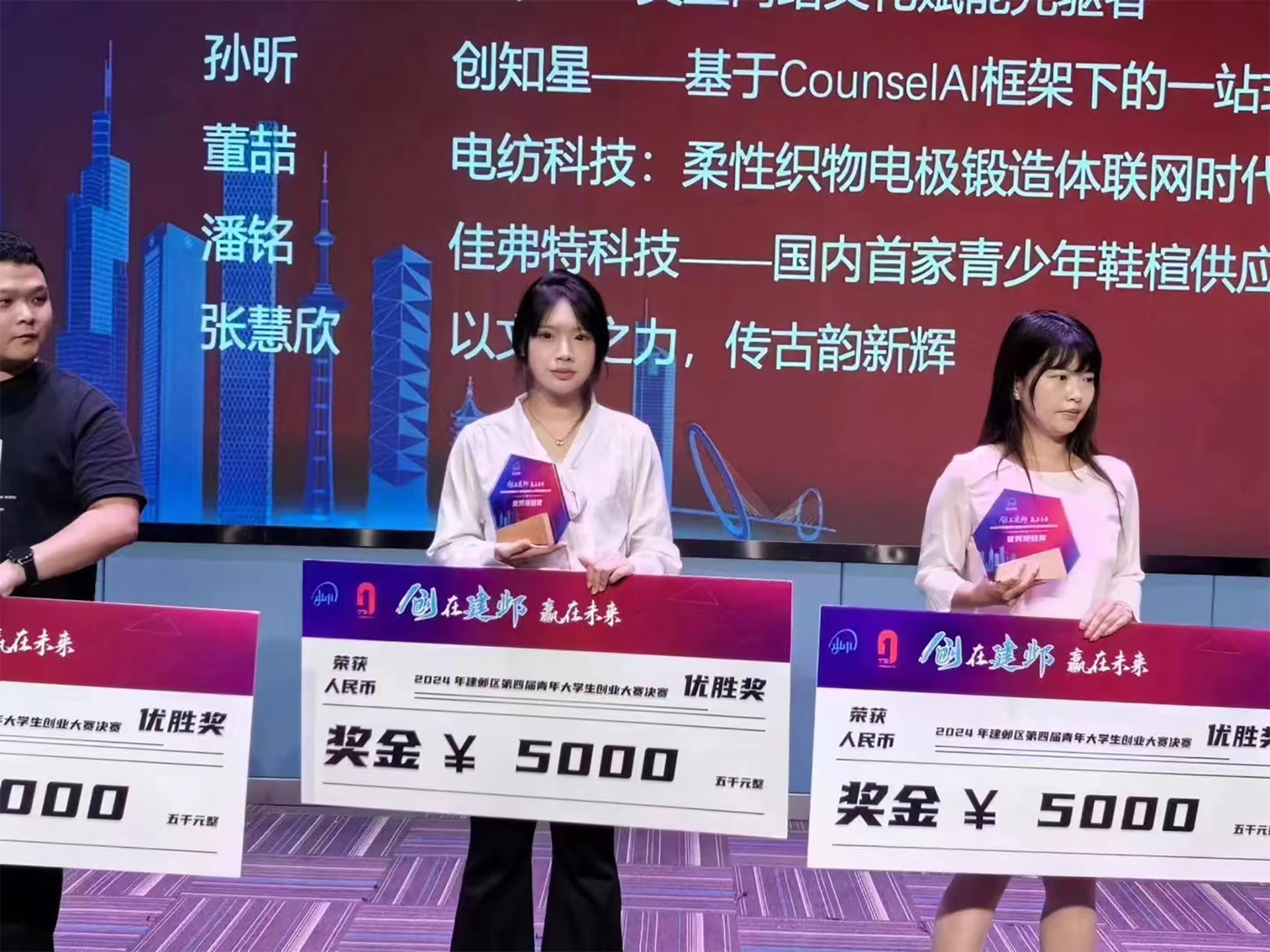 艺术设计与建筑工程系张慧欣团队的创业项目《以文创之力,传古韵新辉》在2024年建邺区第四届青年大学生创业大赛获优胜奖。