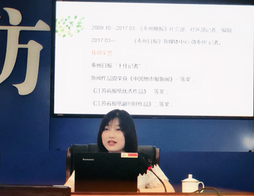 2009年,进入泰州市报业传媒集团(泰州日报社),从事记者、编辑等工作。在地方最具影响力的媒体就职数十年,该同学学以致用,将在学校所学的新闻采编与制作的专业知识运用到工作中,并发挥着新闻人勤恳务实的工作作风,不畏严寒酷暑深入到采访第一线,报道出许多具有新闻价值、贴近民生、温暖人心的新闻作品。