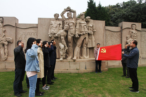 在庄严肃穆的雨花台烈士纪念碑前,全体党员右手握拳、高举过肩,在鲜红的党旗面前,庄严宣誓,重温入党誓词,以此表达对英勇献身的革命先烈们的深切缅怀和崇高敬意。宣誓活动结束后,大家怀着无比崇敬的心情,参观了雨花台烈士纪念馆,阅读了128位牺牲在雨花台及南京地区的革命烈士的文物史料。大家被先烈们舍生取义、奋勇杀敌、不怕牺牲的英勇事迹所感染,纷纷表示,作为生在新时代、走在新征程的中国共产党党员,应继承革命先辈的理想信念,以更强的责任感和使命感,铭记“为中国人民谋幸福,为中华民族谋复兴”的“初心”和“使命”,为实现“两个一百年”奋斗目标而积极努力工作。