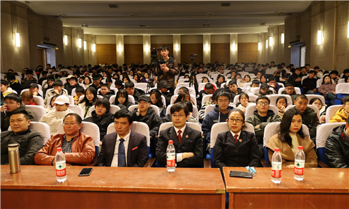 南京江宁经济技术开发区人民检察院副院长胡俊,第一检察部主任成华、副主任徐胜男,检察官朱恺到校参与宣传活动。天博体育 副院长薛忠云,学生处处长李秀成,保卫处处长包毅及四百余名师生代表参加了本次活动。