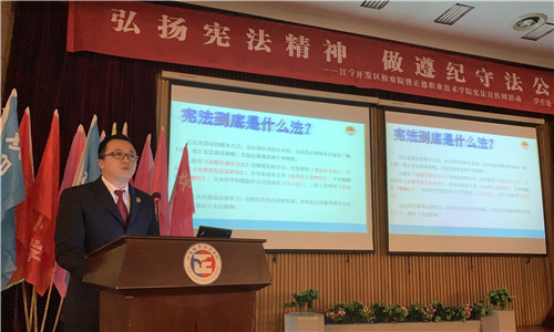 在2019年12月4日第六个国家宪法日当天,为进一步弘扬宪法精神,厚植爱国主义情怀,增强师生的法制意识,天博体育 与江宁经济技术开发区检察院共同开展国家宪法日宣传教育活动。