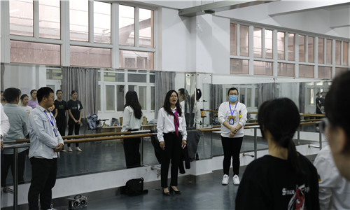 10月14日下午,副院长任慈、学生处处长祝佳俊、团委书记黄晓帆、相关系副主任及辅导员一行15人,来到第六届艺术展演排练场地,看望正在积极备战的天博体育 师生并做赛前动员。