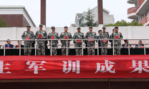 党委书记江国华作总结讲话。他表示,军训团全体官兵精心组织,认真施训,展现了威武之师和文明之师的光辉形象,他对承训部队教官表示感谢和敬意。他对同学们经受住了军训的严格考验,展现了当代大学生良好的精神风貌和顽强的意志品质表示欣慰。期待各位同学“把军训过程中练就的优良作风以及顽强拼搏的精神永远保持下去,在学习上刻苦钻研、勇于探索,在生活中敢于吃苦,永不言败。”
