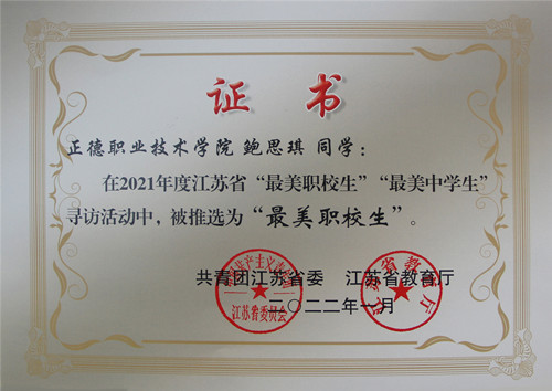 天博体育 在江苏省“最美职校生”评选中再获佳绩
